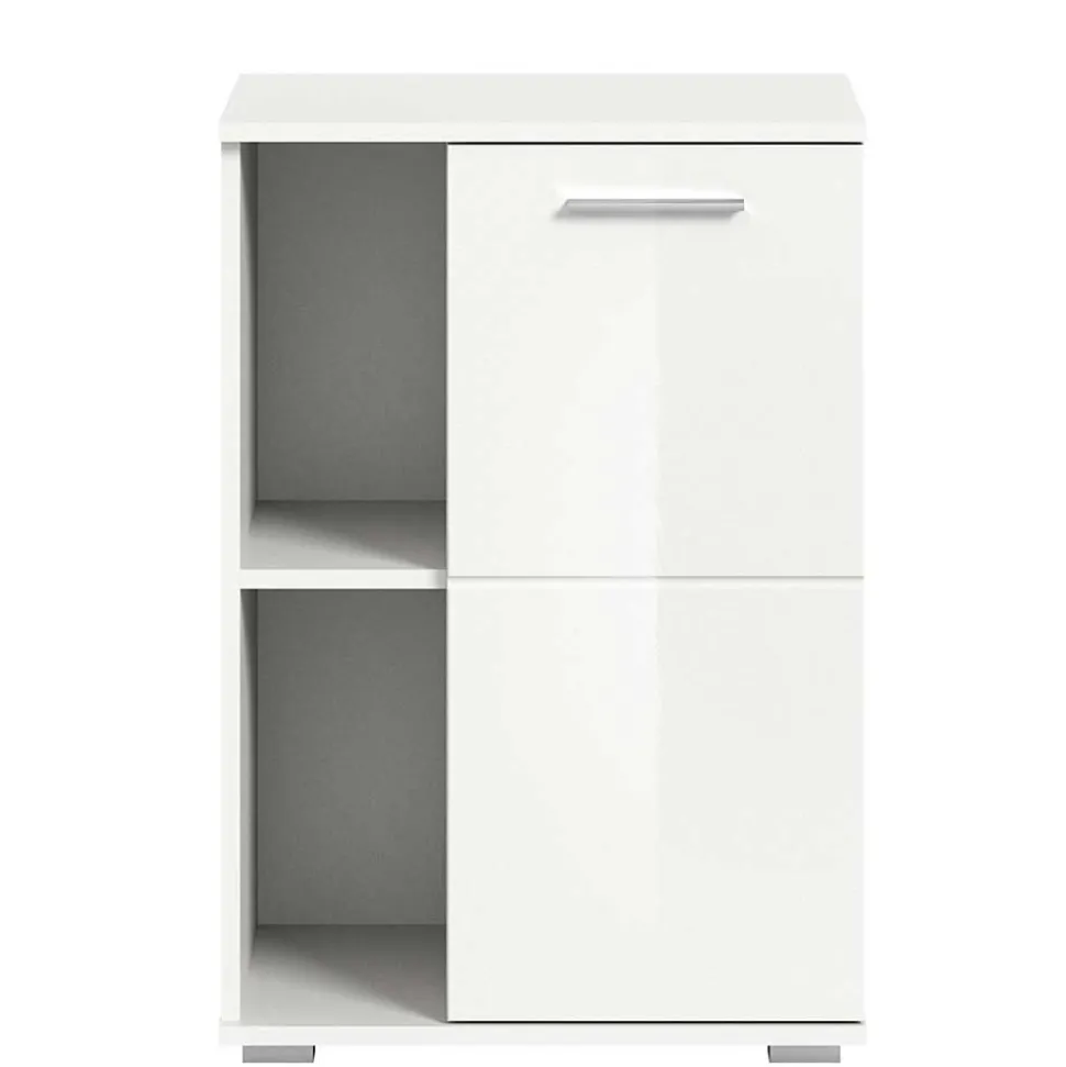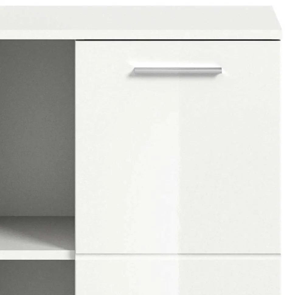 Holzwerkstoff bildet die Grundlage dieses Möbelstücks und überzeugt durch seine Robustheit und Umweltfreundlichkeit. Dieser moderne Werkstoff besteht aus nachhaltig gewonnenen Holzfasern und ist für seine Stabilität und Formtreue bekannt. Die matte Folierung des Korpus schützt nicht nur die Oberfläche, sondern verleiht ihr eine sanfte Haptik und macht sie leicht zu reinigen. Gleichzeitig begeistert die hochglänzende Front mit ihrer widerstandsfähigen Beschichtung, die nicht nur edel aussieht, sondern auch im Alltag durch ihre Pflegeleichtigkeit punktet.