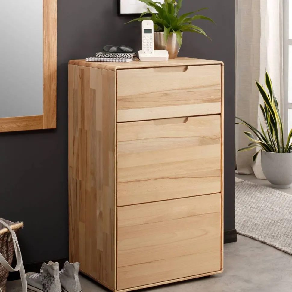 Modernes Design und natürliche Materialien vereinen sich in der Hochkommode Estville, einem Möbelstück, das nicht nur praktisch ist, sondern auch Ihr Zuhause aufwertet. Das moderne, geradlinige Design harmoniert mit dem zeitlosen Charme der massiven Kernbuche und macht die Kommode zum perfekten Begleiter in jedem Wohnstil.