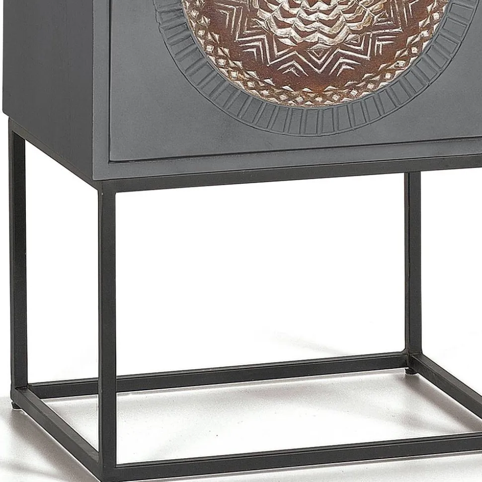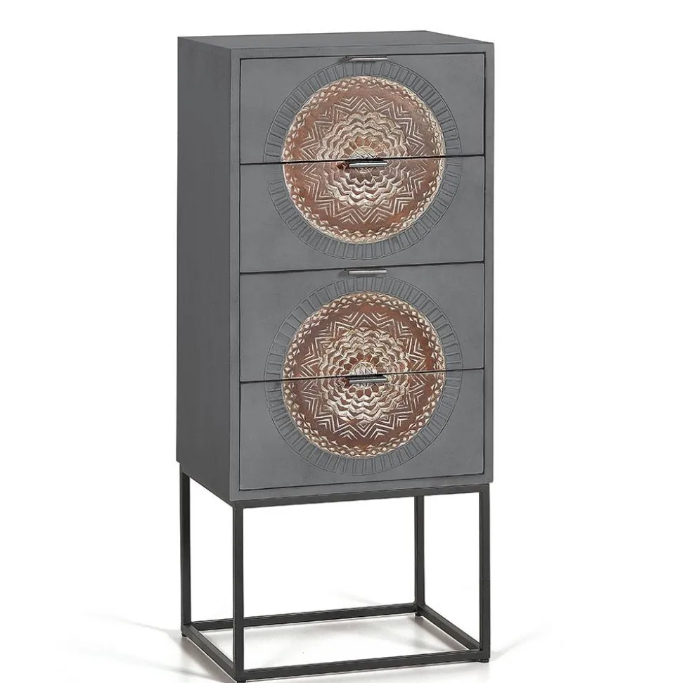 Verleihen Sie Ihrem Wohnraum eine außergewöhnliche Note mit der faszinierenden Hochkommode „Mesusco“. Die Kombination aus edlem Mangoholz und robustem Metall verleiht diesem Möbelstück seinen unverwechselbaren Charakter. Die kunstvolle Gestaltung in harmonischen Grau- und Brauntönen mit eleganten schwarzen Akzenten sorgt für ein orientalisch inspiriertes Ambiente. Jedes Exemplar ist ein handgefertigtes Unikat und bringt mit seinen charmanten Variationen in Farbe, Form und Struktur individuellen Charme in Ihre Einrichtung.