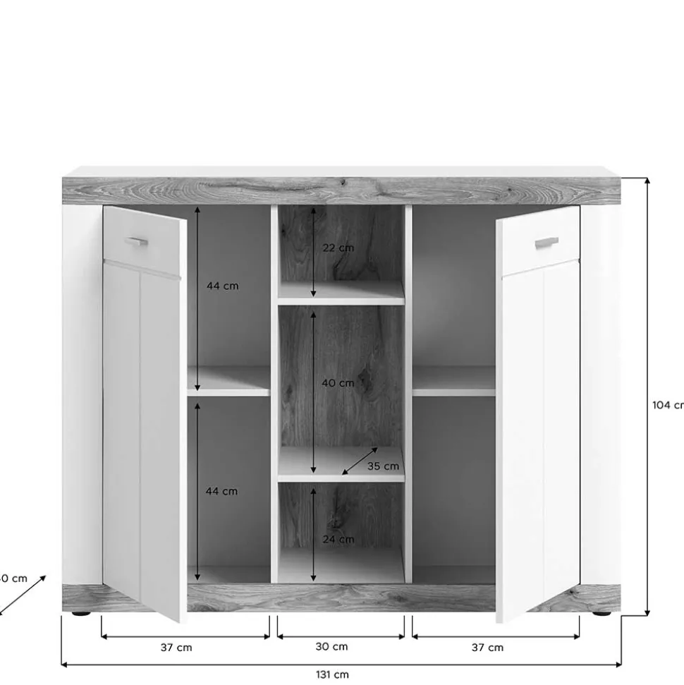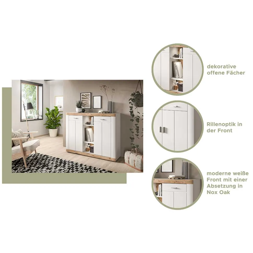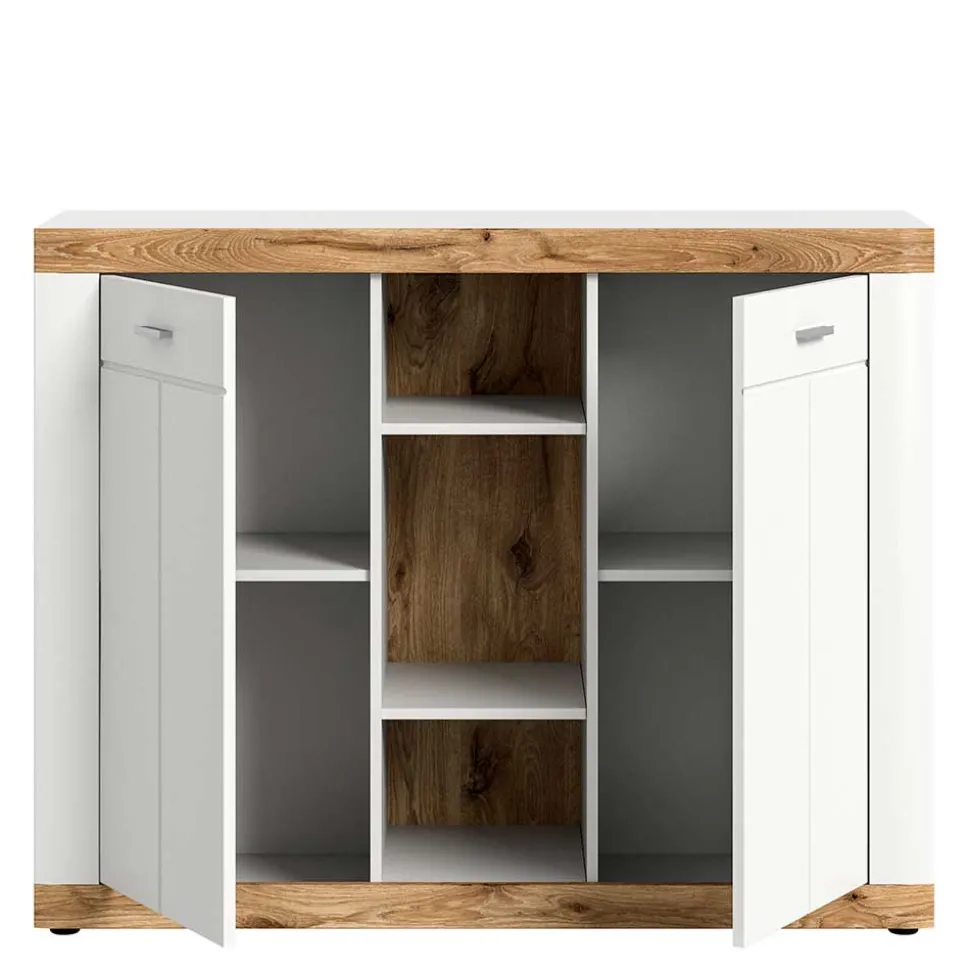 - Ansprechendes Sideboard in Weiß und Wildeichefarben