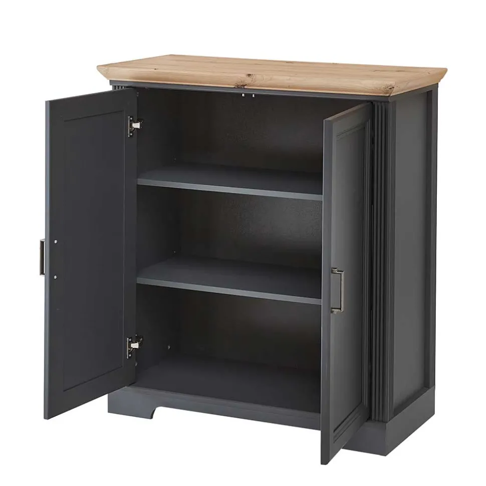 - Vielseitige Kommode in Dunkelgrau und Eichefarben