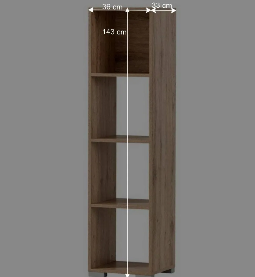 Mit einer Breite von nur 36 cm und einer Höhe von 143 cm passt das Regal auch in kleinere Büros oder Nischen. Hinter dem schlanken Äußeren verbergen sich vier großzügige Fächer in Ordnerhöhe – perfekt, um Unterlagen, Aktenordner oder Bürobedarf systematisch zu verstauen. Dank der drei variabel einsetzbaren Einlegeböden lässt sich der Innenraum flexibel gestalten. Die offene Gestaltung ermöglicht dabei schnellen Zugriff auf alle Unterlagen – effizient und zeitsparend.