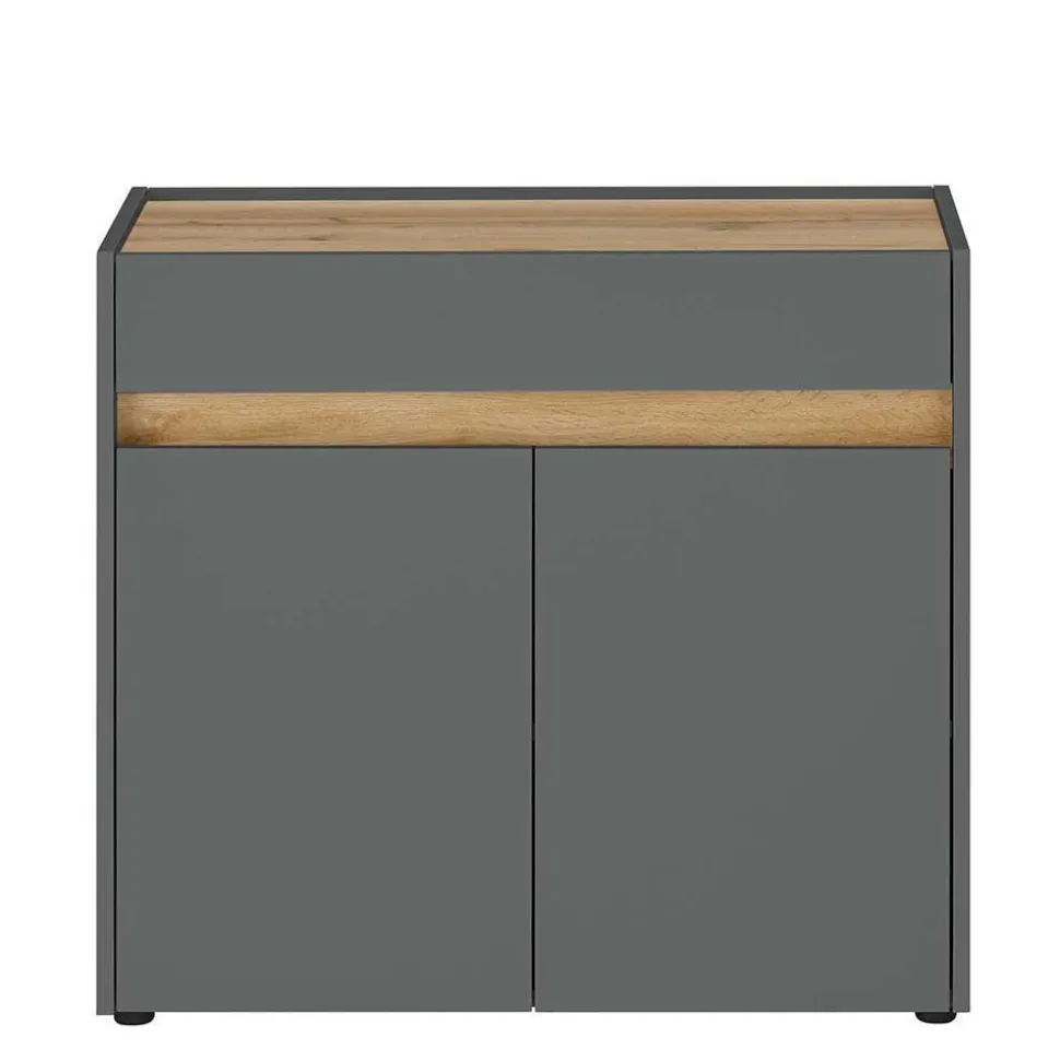 - Oberflächen pflegeleicht melaminbeschichtet in Holzoptik und Anthrazit