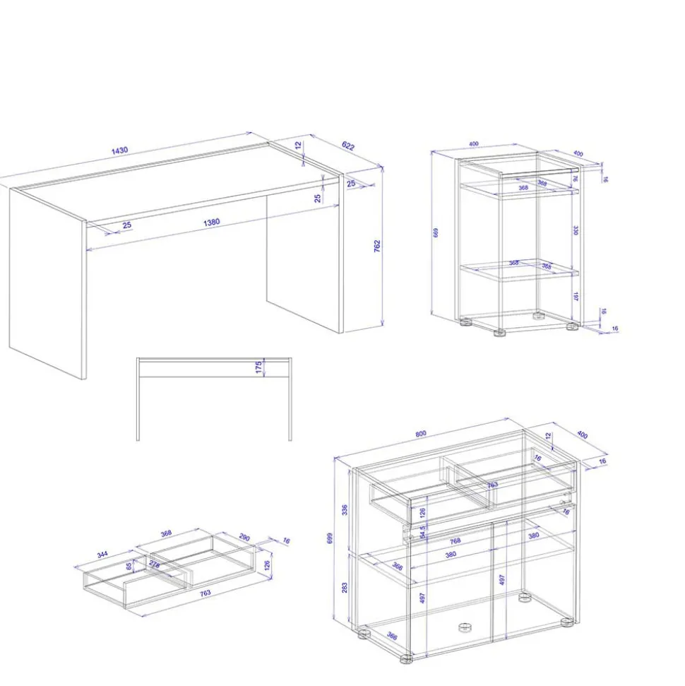 Die Kommode und das Regal sind beidseitig stellbar, was Ihnen ermöglicht, Ihren Arbeitsbereich nach Ihren individuellen Bedürfnissen zu gestalten. Dieses Set passt sich Ihrem Raum und Ihrem Stil an.