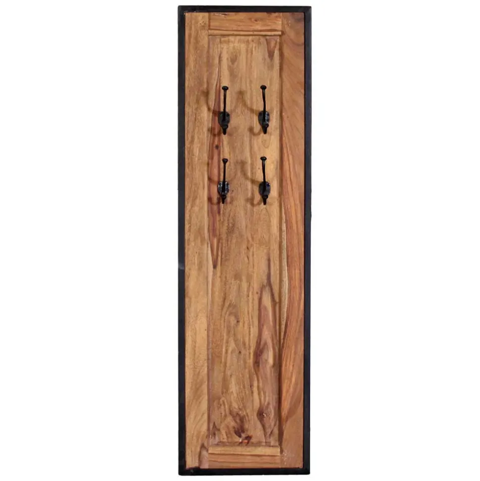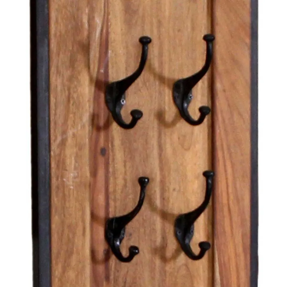 Abgerundet wird das Set durch zwei Garderobenpaneele (je 35x110x8 cm), die sich platzsparend an der Wand montieren lassen. Ausgestattet mit jeweils vier formschönen Doppelhaken aus Metall bieten sie ausreichend Platz für Mäntel, Hüte und Taschen. Der industrielle Look der Haken fügt sich nahtlos in das Gesamtbild ein und unterstreicht die urbane Stilrichtung.