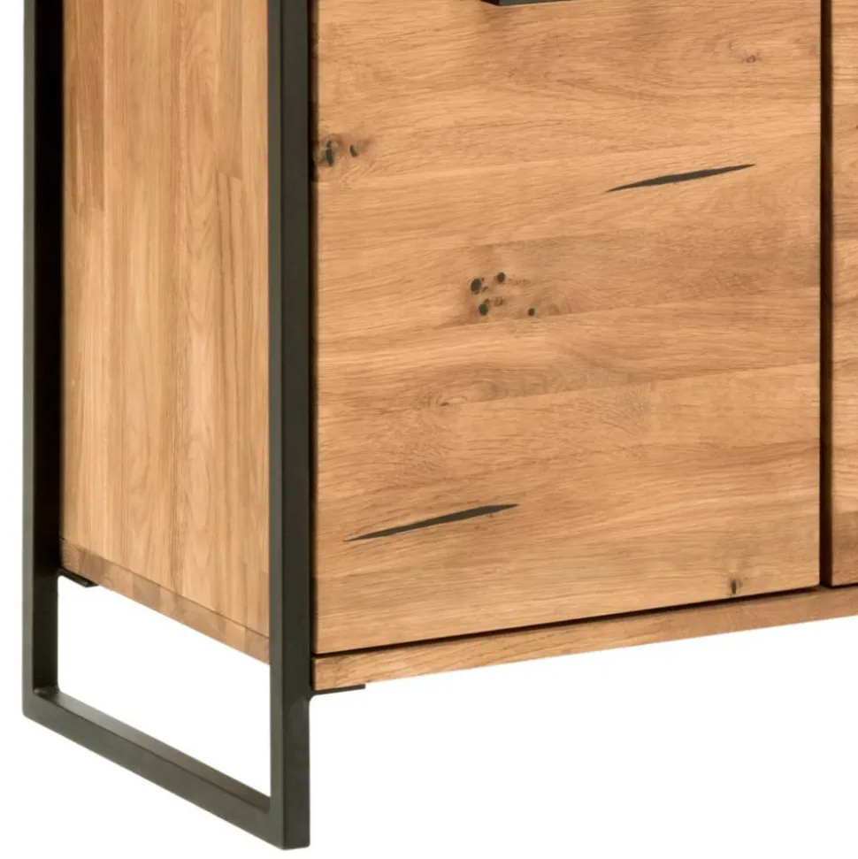 Massives Wildeicheholz bildet das Herzstück dieser Kommode – spürbar robust, charaktervoll und von faszinierender Lebendigkeit. Die offenporige Oberfläche ist mit einem natürlichen Öl behandelt, das nicht nur die markante Maserung betont, sondern auch die Haptik des Holzes bewahrt. Jeder Griff über die Fläche wird zum sinnlichen Erlebnis – warm, natürlich, einladend. Wildeiche ist besonders hart und widerstandsfähig – perfekt für alle, die sich langlebige Qualität mit echtem Naturgefühl wünschen.