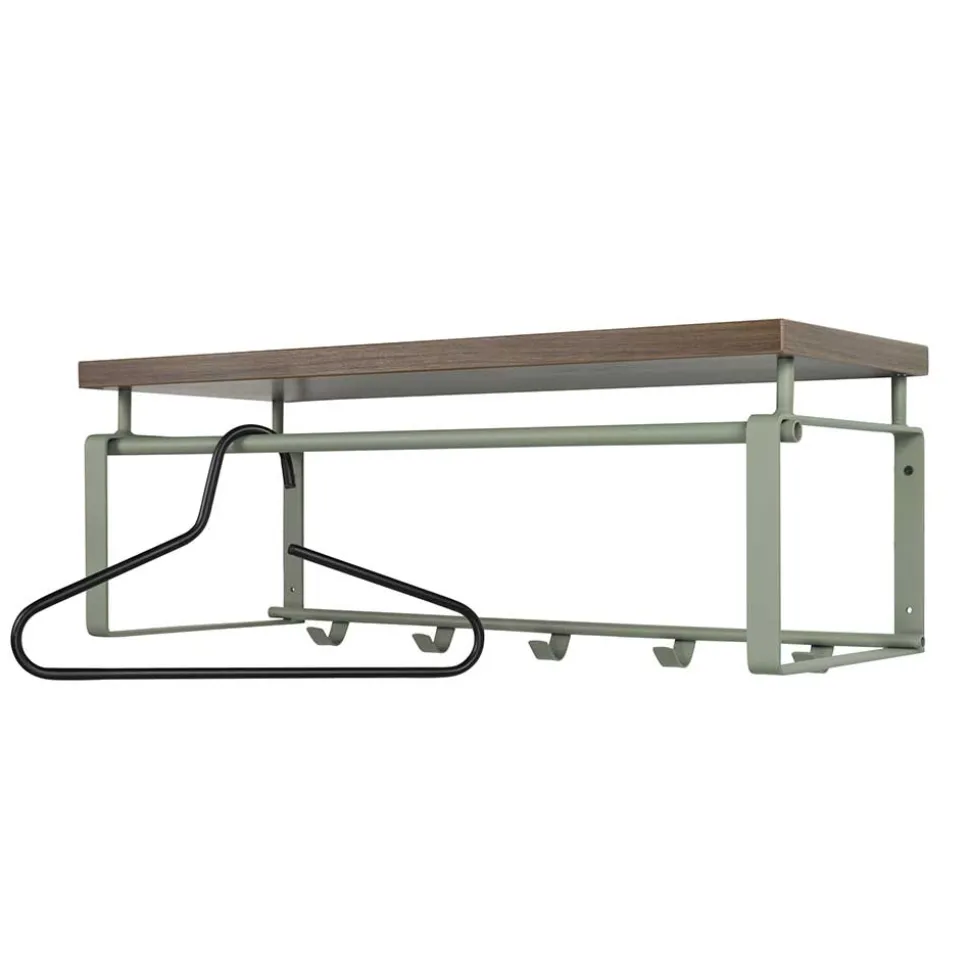 - Ansehnliche Wandgarderobe in Graugrün und Dunkelbraun