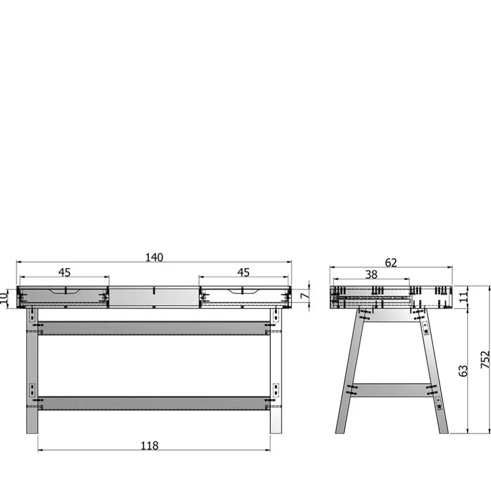 - Zwei Schubladen mit Metallauszug und Grifflöchern