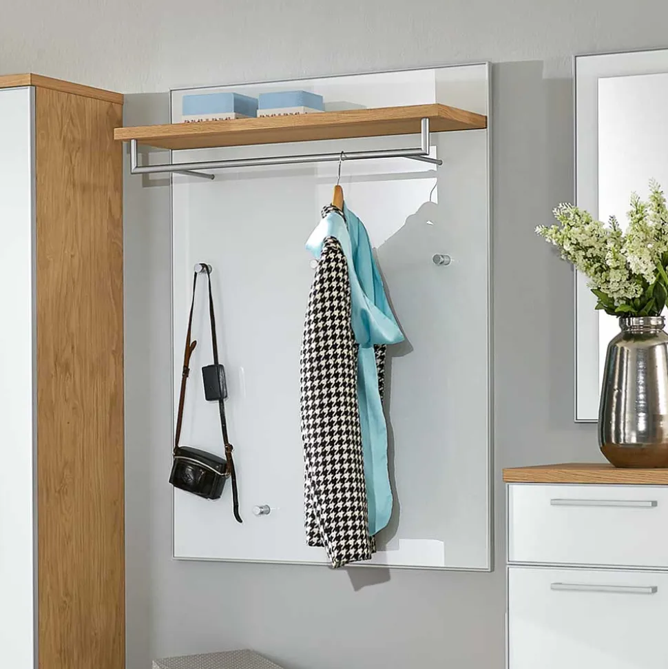 - Attraktives Garderobenpaneel in Weiß und Eiche Bianco