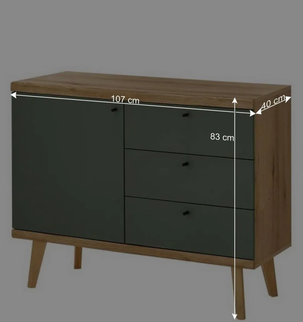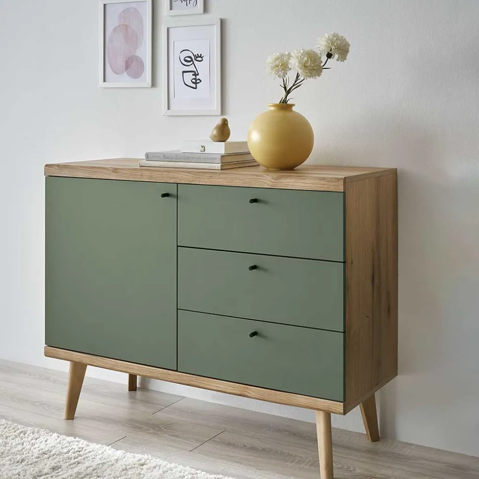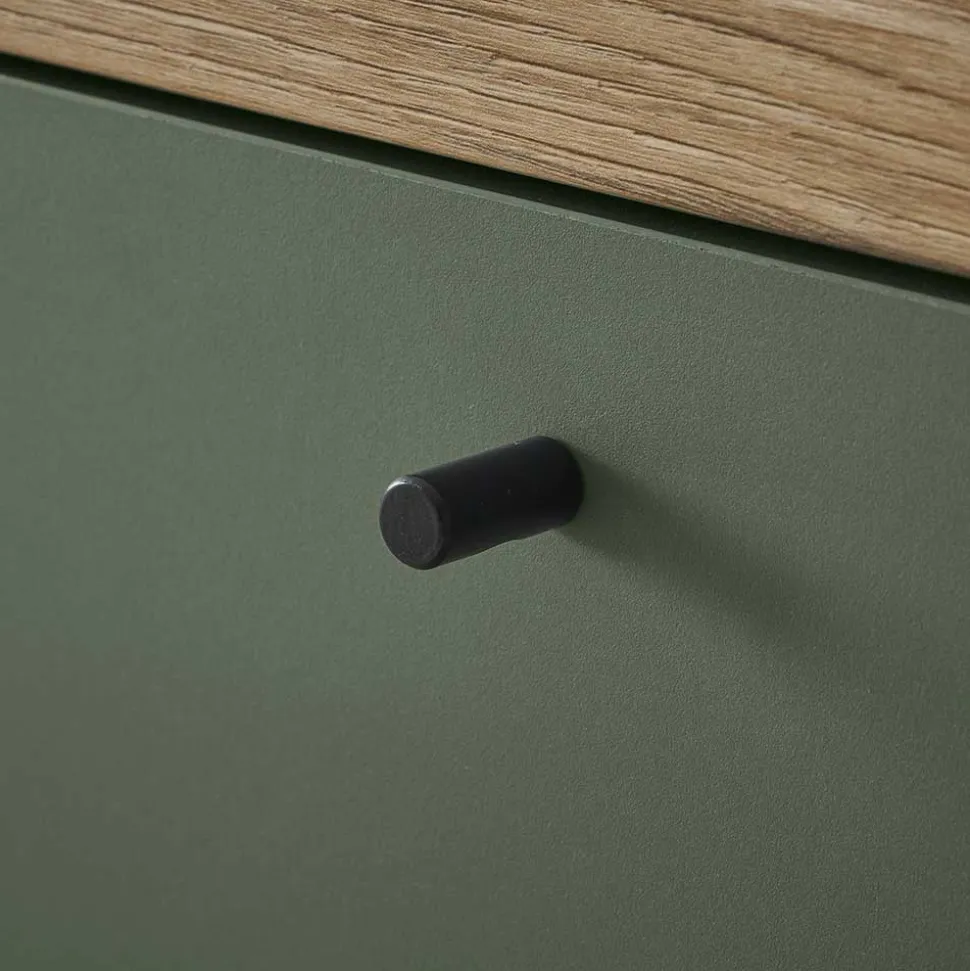 Flexibilität ist eine der größten Stärken der Kommode „Oliva“. Dank ihres durchdachten Designs fügt sie sich mühelos in verschiedenste Wohnstile ein – von modern bis klassisch, von skandinavisch bis industriell. Die harmonische Farbgebung in Graugrün und Wildeichefarben macht sie zu einem vielseitigen Möbelstück, das in jedem Raum einen besonderen Akzent setzt. Besonders der kontrastreiche Farbkontrast, kombiniert mit den natürlichen Holznuancen, verleiht Ihrem Zuhause eine warme und einladende Atmosphäre.