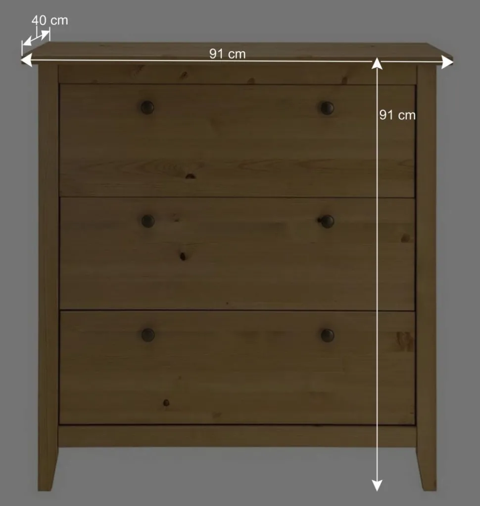 Die Qualität und Verarbeitung der Kommode sind hervorragend. Die Rückwand ist aus Sperrholz und sorgt für zusätzliche Stabilität. Mit den Maßen von 91 cm Breite, 91 cm Höhe und 40 cm Tief ist die Kommode auch für kleinere Räume geeignet.