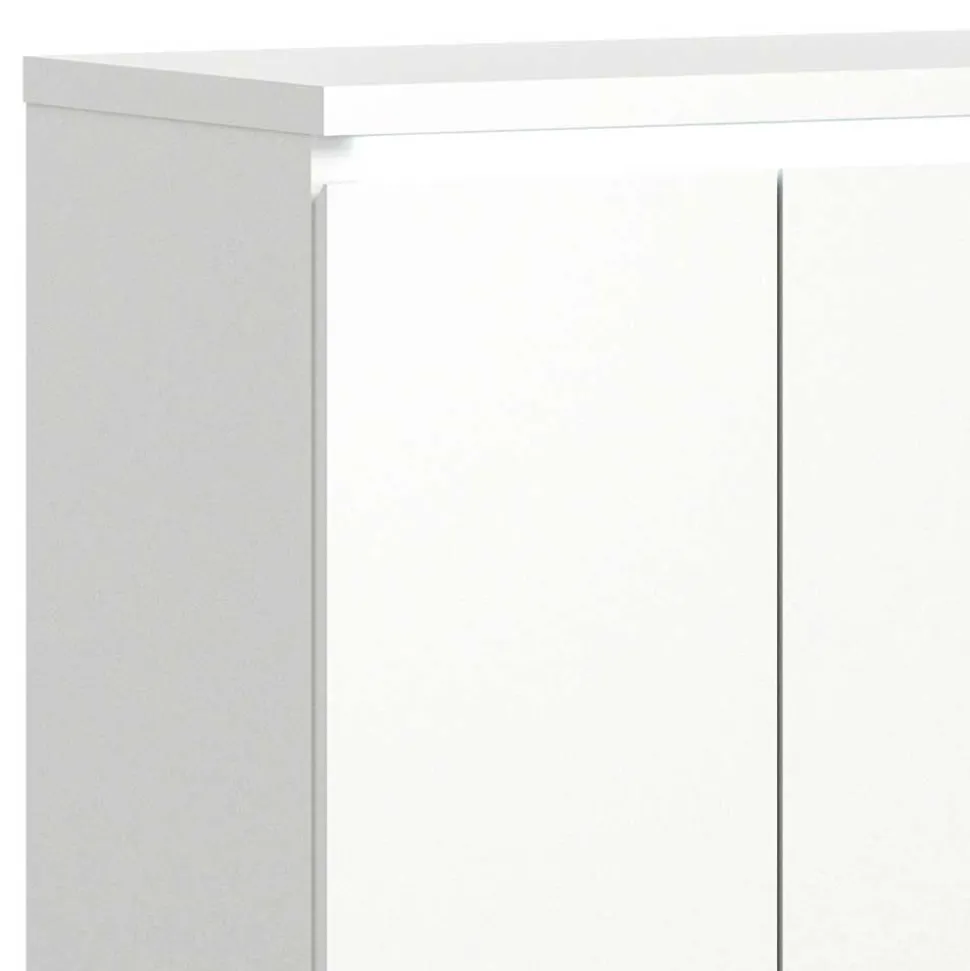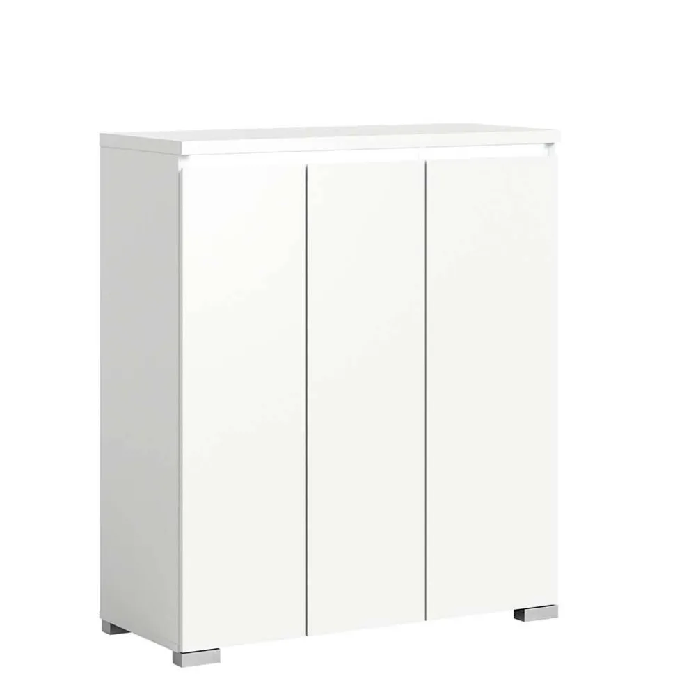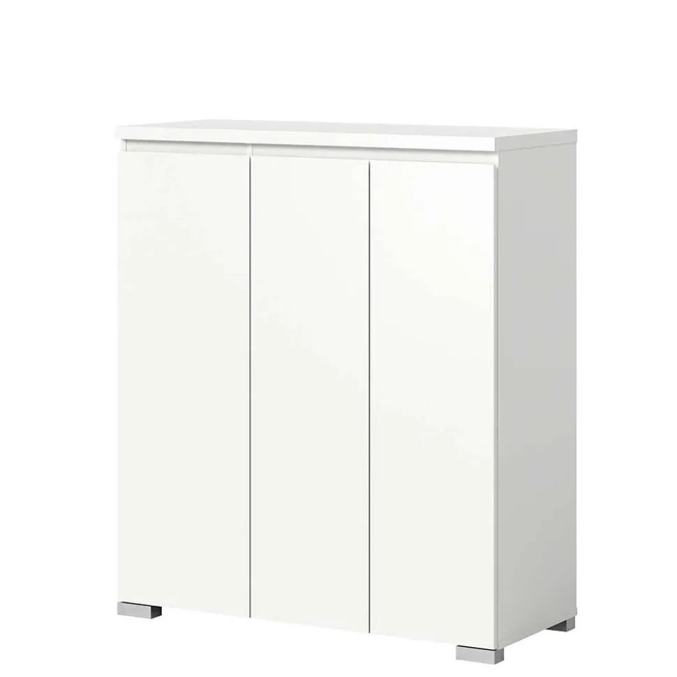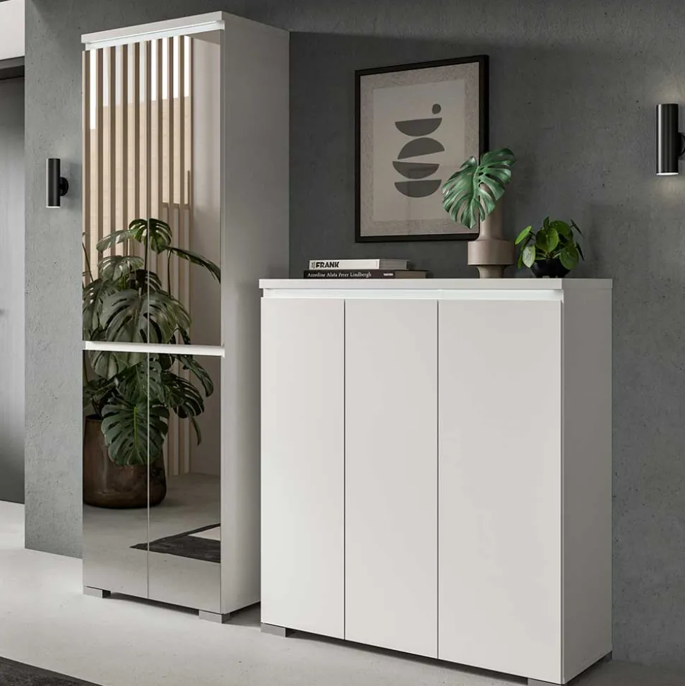Moderne Wohnkultur beginnt bereits im Eingangsbereich: Hier setzt die Schuhkommode „Dany“ ästhetische Akzente mit ihrem klaren, modernen Design. Mit einer Breite von 95 cm, einer Höhe von 109 cm und einer Tiefe von 40 cm fügt sich dieses Möbelstück harmonisch in jeden Raum ein, ohne dabei aufdringlich zu wirken. Das schlichte, weiße Finish sorgt für eine helle, freundliche Atmosphäre, die Ihre Gäste willkommen heißt.