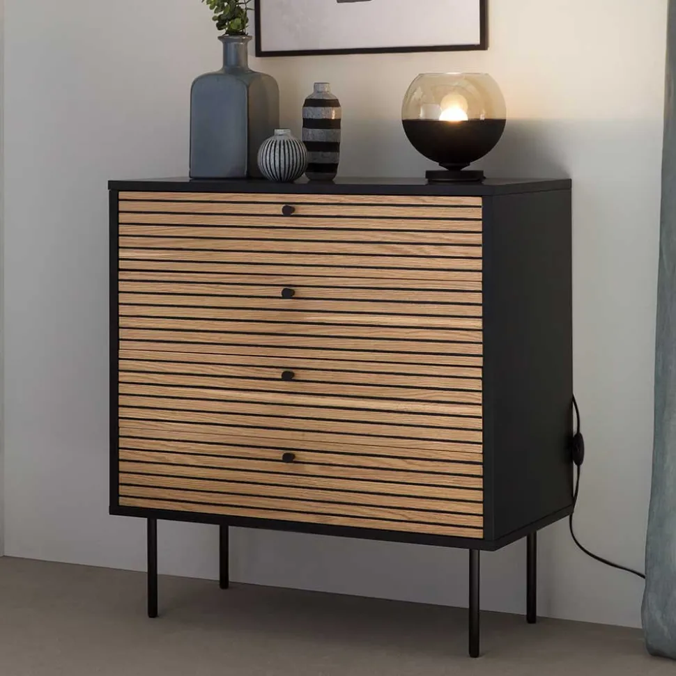 - Schicke Schubladenkommode in Schwarz und Eichefarben