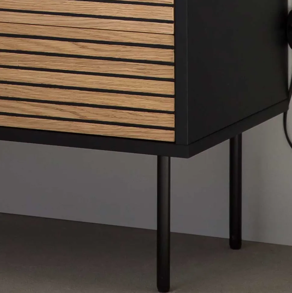 - Korpus in Schwarz melaminbeschichtet, Front dekorativ mit Eiche echtholzfurniert