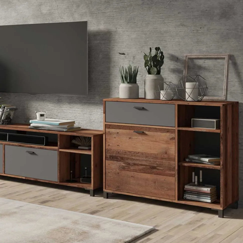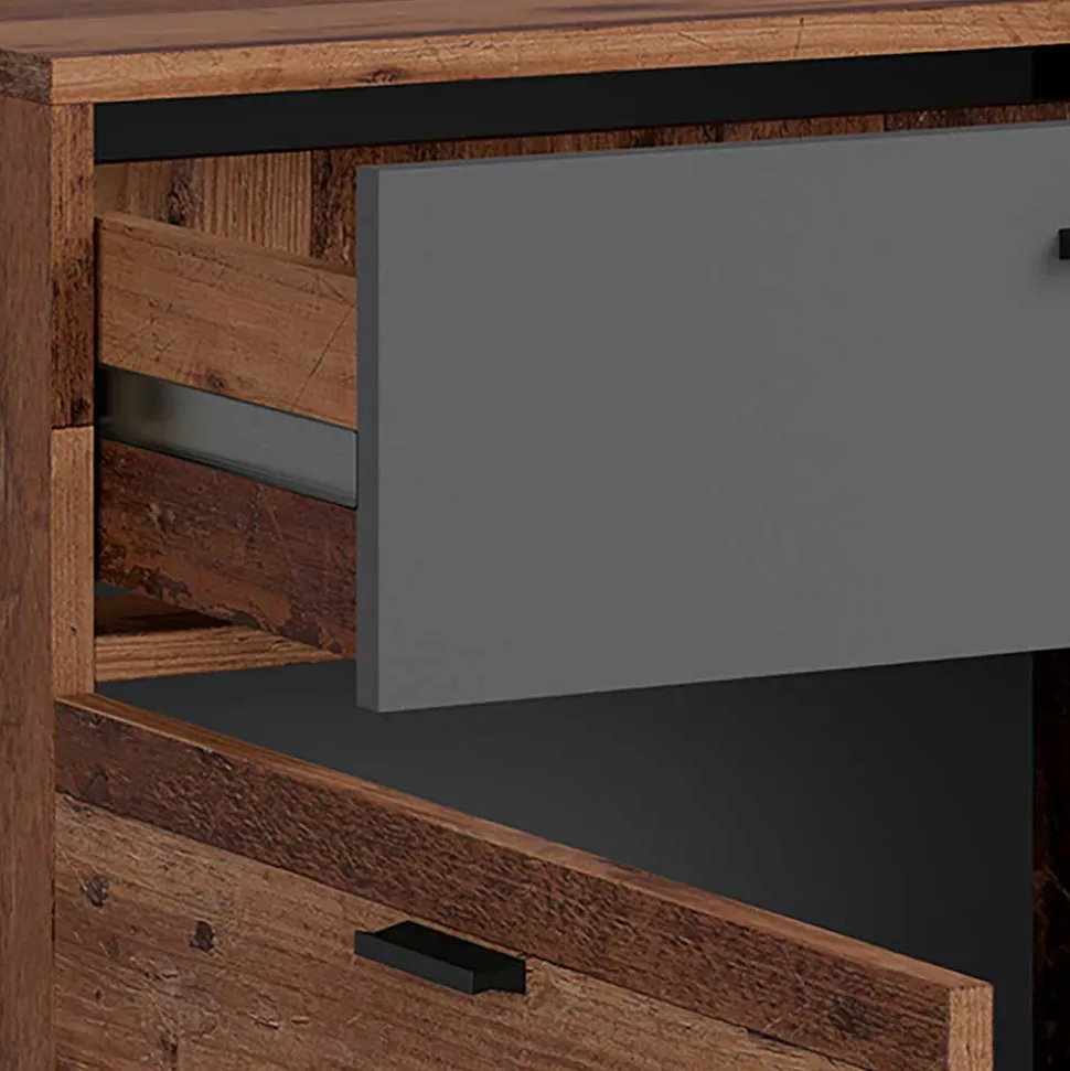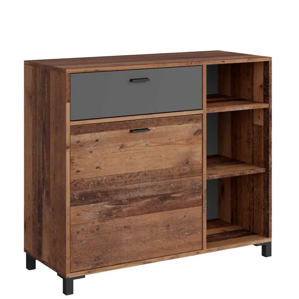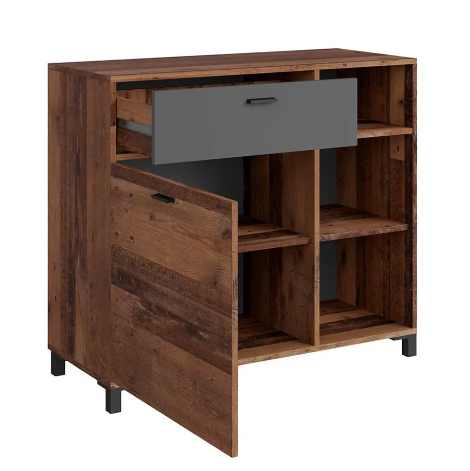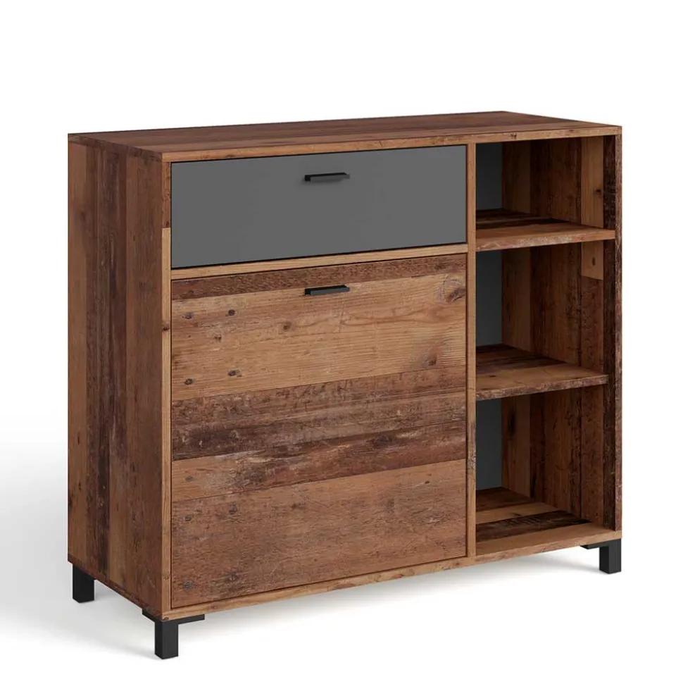 - Ansprechende Kommode in Altholz Optik und Anthrazit