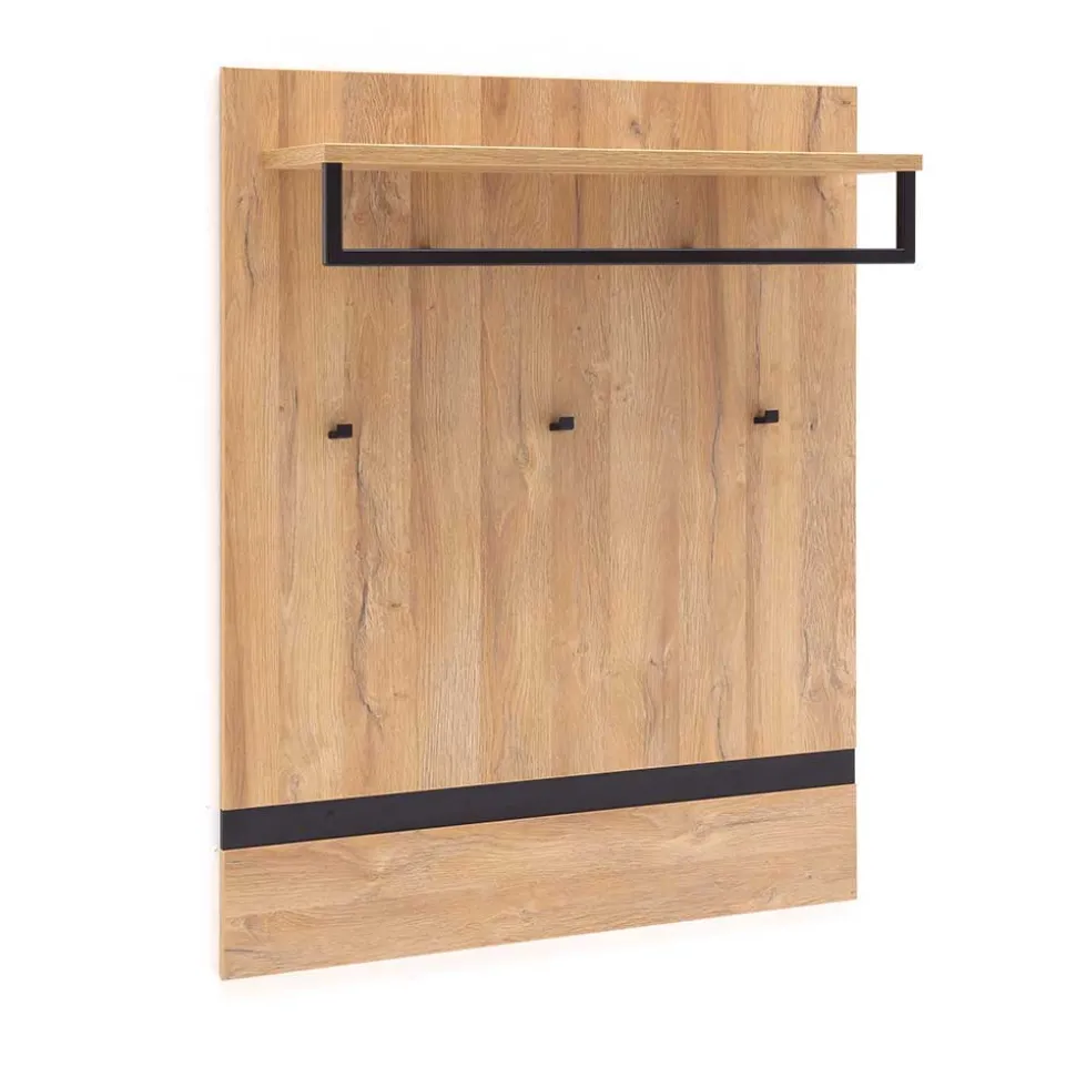 - Durchgehende Rückwand mit drei fest montierten Metall Kleiderhaken