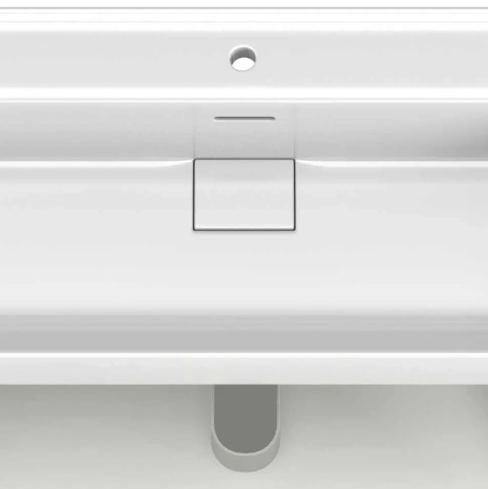 Abgerundet wird das Ensemble durch das hochwertige Einsatzwaschbecken aus weißer Keramik. Mit einer Breite von 99,8 cm, einer Höhe von 18,5 cm und einer Tiefe von 46,8 cm bietet es eine großzügige Fläche, die sowohl optisch als auch funktional überzeugt. Die glatte Oberfläche erleichtert die Reinigung und sorgt für langanhaltende Schönheit.