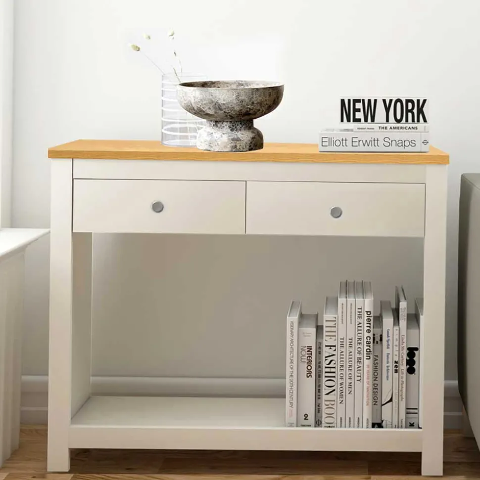 - Klasse Konsolentisch in Cremeweiß und Eichefarben
