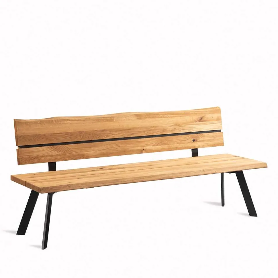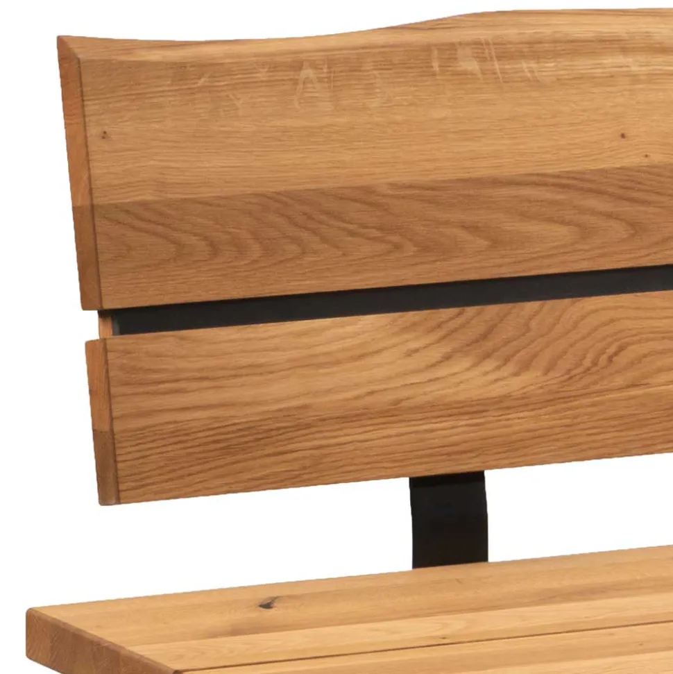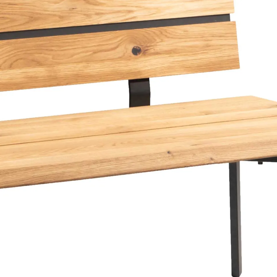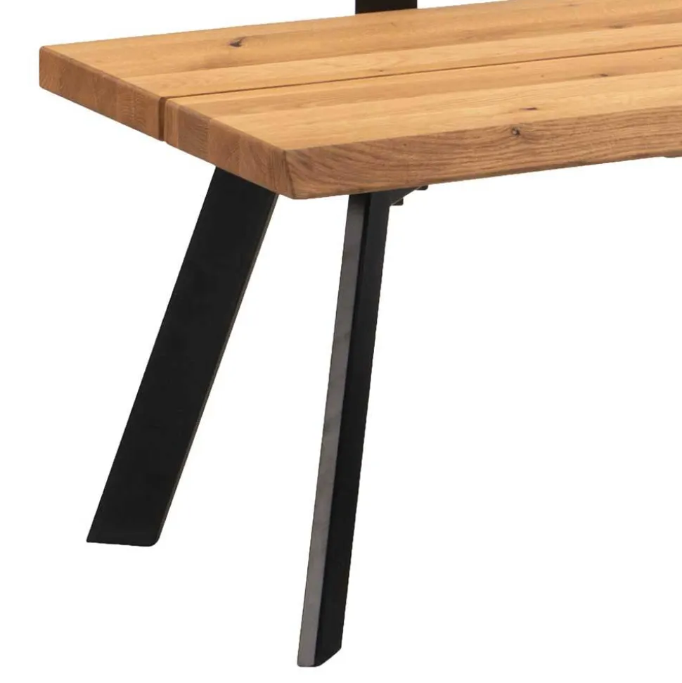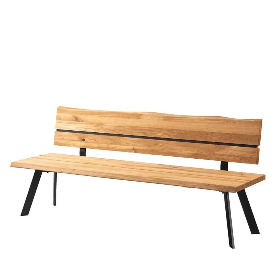 Die Sitzfläche und Rückenlehne der Küchenbank „Piton“ bestehen aus massivem Wildeichenholz, das nicht nur durch seine Robustheit überzeugt, sondern auch durch seine warme Farbgebung und natürliche Struktur. Das Holz wird geölt, um seine Langlebigkeit zu gewährleisten und es gleichzeitig pflegeleicht zu machen. Für den modernen Kontrast sorgt das pulverbeschichtete Metallgestell in Schwarz, das der Bank einen sicheren Stand verleiht. Die leicht nach hinten geneigte Rückenlehne ist perfekt geformt, um Ihnen optimalen Sitzkomfort zu bieten – selbst bei längeren Abenden am Esstisch.
