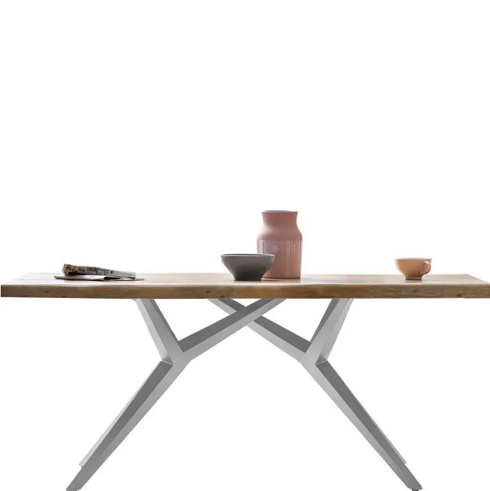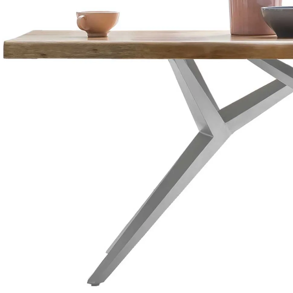 - Massiver Esstisch in Mangoholz Naturfarben und Antiksilber