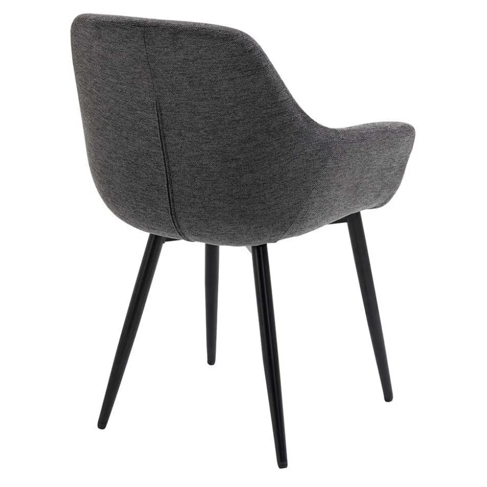 Die vier Stühle dieser Gruppe bieten nicht nur eine ansprechende Optik, sondern auch höchsten Sitzkomfort. Bezogen mit einem strapazierfähigen Strukturwebstoff in elegantem Anthrazit (100 % Polyester), fügen sie sich stilvoll in jede Einrichtung ein. Eine weiche Schaumstoffpolsterung sorgt für angenehmen Sitzkomfort, während die ergonomisch geformte Rückenlehne mit leichter Neigung den Rücken optimal unterstützt. Mit einer Sitzhöhe von 47 cm, einer Sitztiefe von 44 cm und einer Sitzbreite von 44 cm laden diese Stühle zu langen, gemütlichen Stunden am Tisch ein. Die stabilen, konisch zulaufenden Beine aus pulverbeschichtetem Metall in Schwarz sorgen für sicheren Stand und eine moderne Ästhetik.