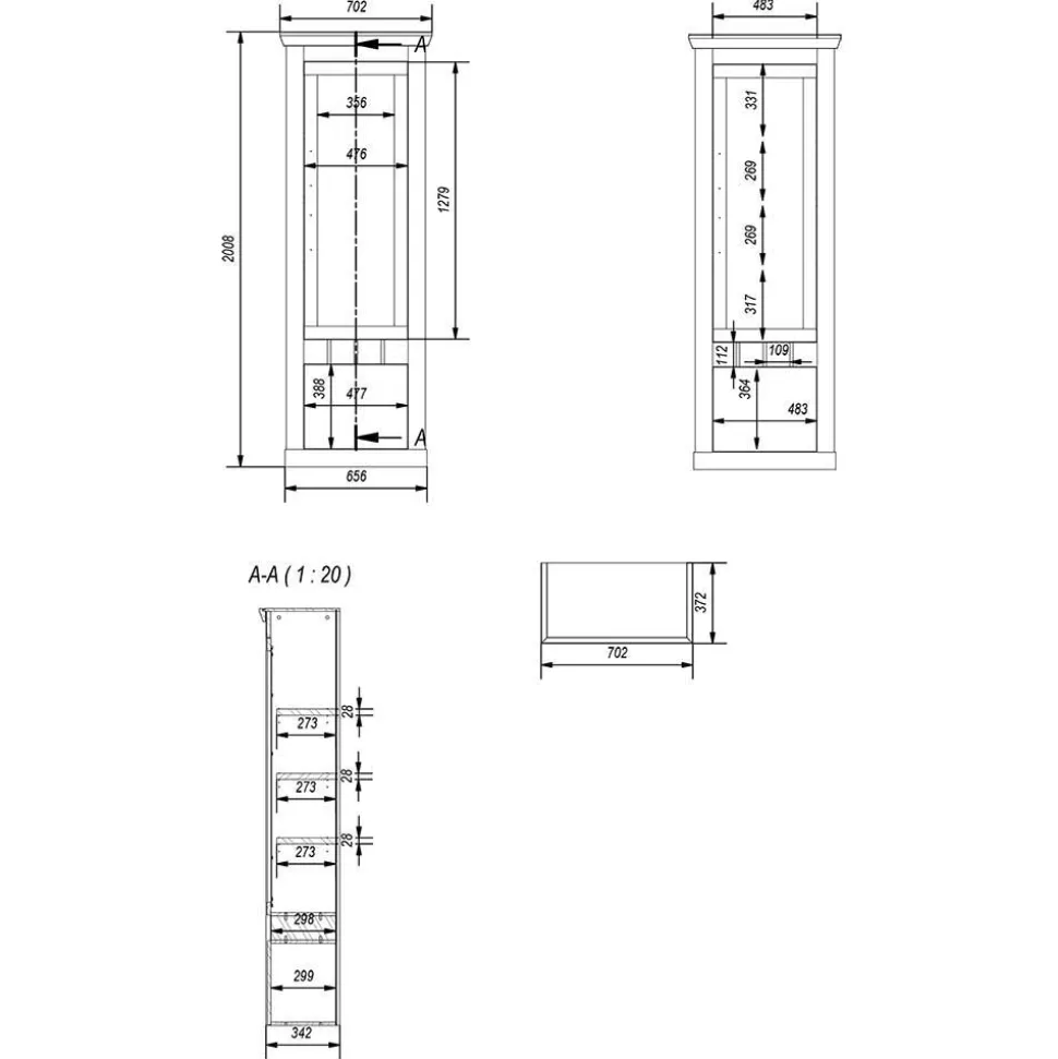 - Regal zur Wandmontage, der Rest steht auf einem ca. 8 cm hohen Sockel