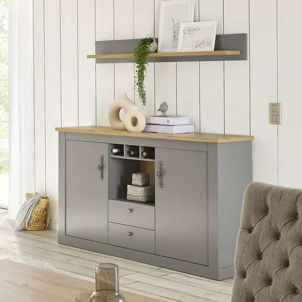 - Trendiges Sideboard in Lichtgrau und Eichefarben