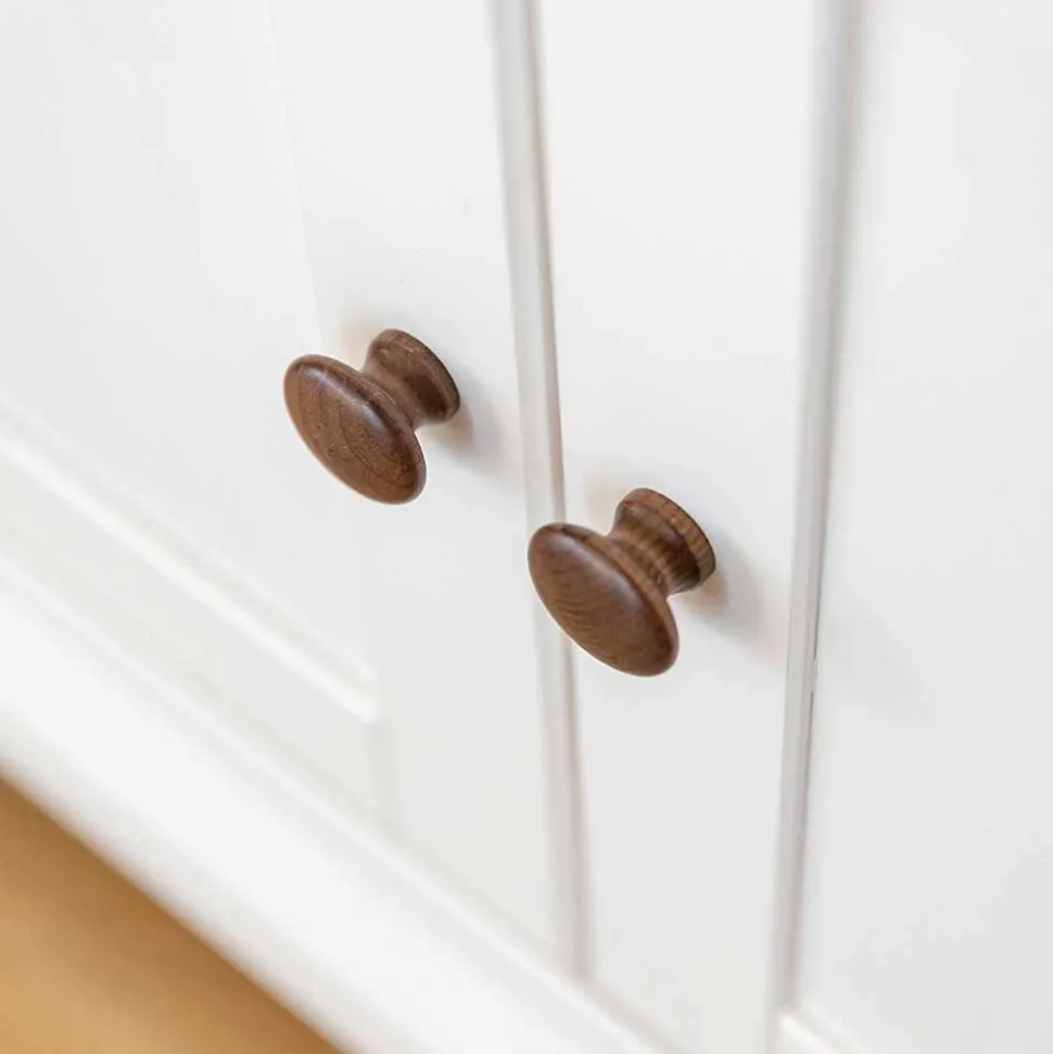 Die Kommode „Zalya“ wird aus robustem Kiefernholz gefertigt, das für seine natürliche Schönheit und Langlebigkeit bekannt ist. Die Oberfläche ist weiß lackiert, wobei die Maserung des Holzes dezent durchschimmert und für eine authentische Optik sorgt. Die braunen Elemente wurden sorgfältig gebeizt und lackiert, wodurch eine edle Kontrasterstellung zu den weißen Flächen entsteht. Das Holz ist nicht nur ein optisches Highlight, sondern auch besonders pflegeleicht und sorgt für eine angenehme Haptik. Der Einlegeboden im Inneren ist aus Holzwerkstoff, genauso wie der Schubladenboden, während die Rückwand aus robustem Material besteht. Die rund gearbeiteten Holzknopfgriffe ergänzen das Gesamtbild und verleihen der Kommode eine charmante, rustikale Note.