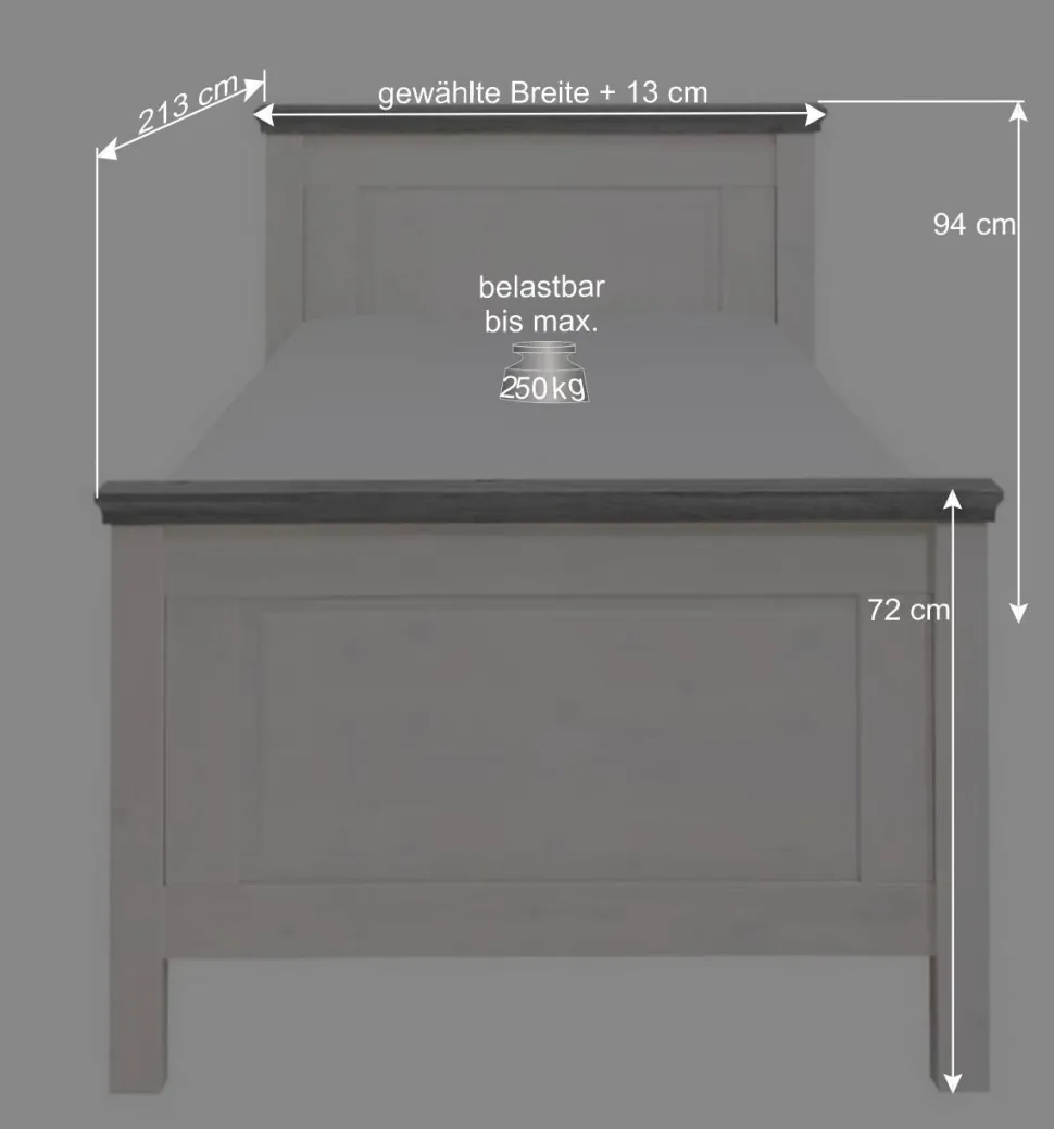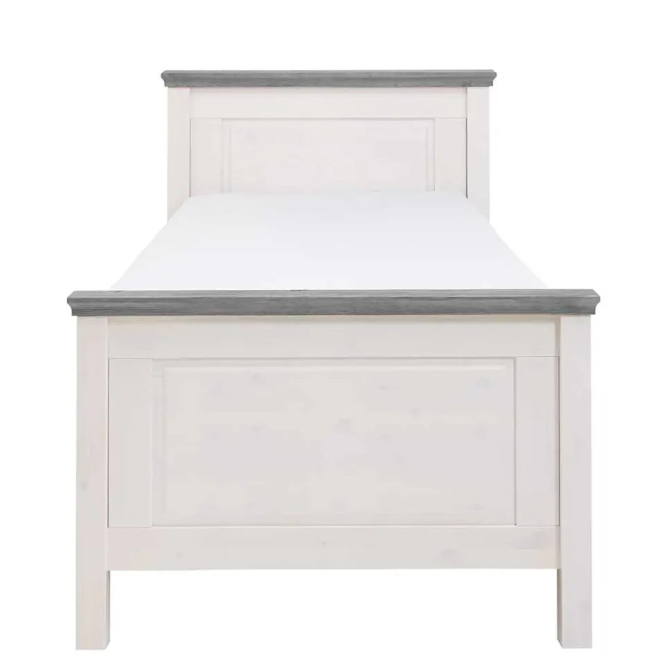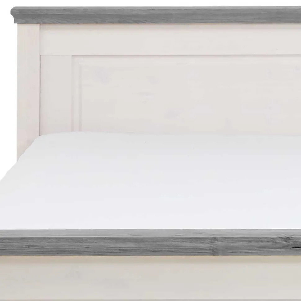 Landhaus Massivholzbett in Weiß & Grau - Mirandesca