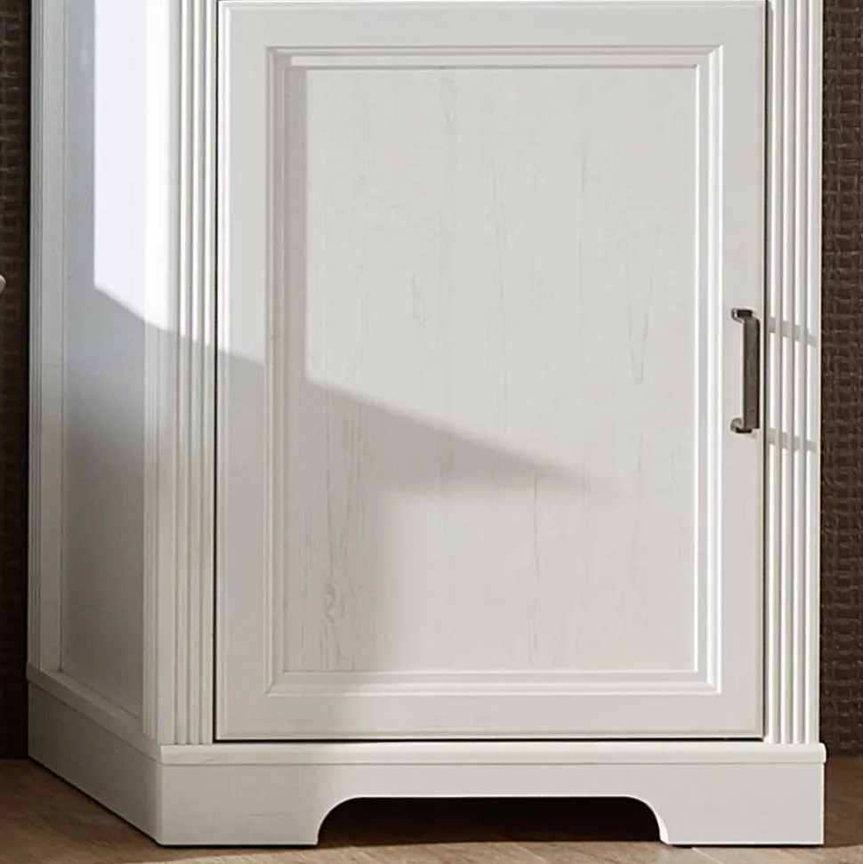 Die Fronten unserer „Sinolita“-Möbel bestehen aus stabilem MDF (Mitteldichte Faserplatte), während die Korpusse aus langlebiger Spanplatte gefertigt sind. Die Oberflächen sind in einer attraktiven Holzoptik Pinie Weiß foliert, während die Absetzungen in einer edlen Holzoptik Eiche gehalten sind. Diese hochwertige Folierung bietet nicht nur eine ansprechende Optik, sondern schützt die Oberflächen auch vor Kratzern und Abnutzung.