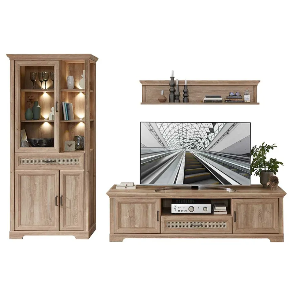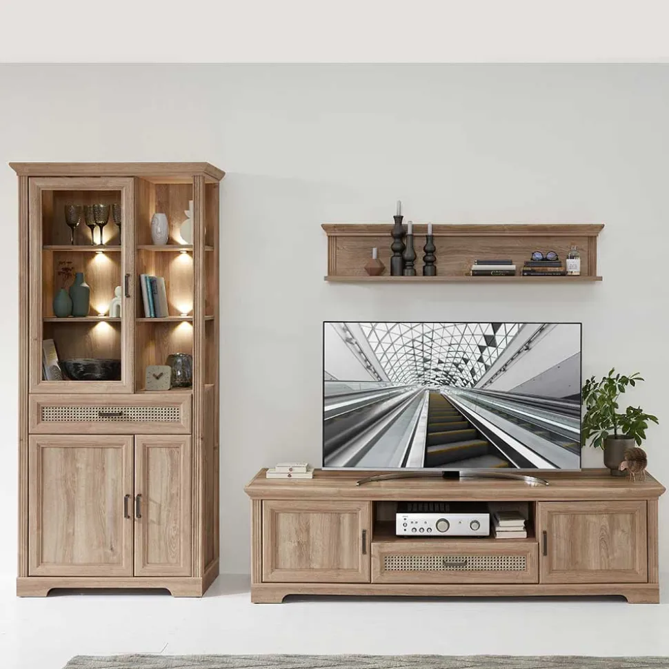 Stilvolles Wohnen beginnt mit der richtigen Einrichtung, und die Wohnwandmöbel „Barack“ bieten genau das – eine perfekte Symbiose aus Funktionalität und Ästhetik. Der Landhausstil, bekannt für seine rustikale Eleganz und gemütliche Atmosphäre, zeichnet sich durch warme, natürliche Materialien und eine liebevolle Detailverarbeitung aus. Diese Wohnwand setzt diesen Stil perfekt um und bringt ländlichen Charme in Ihr Zuhause, ohne auf moderne Elemente zu verzichten.