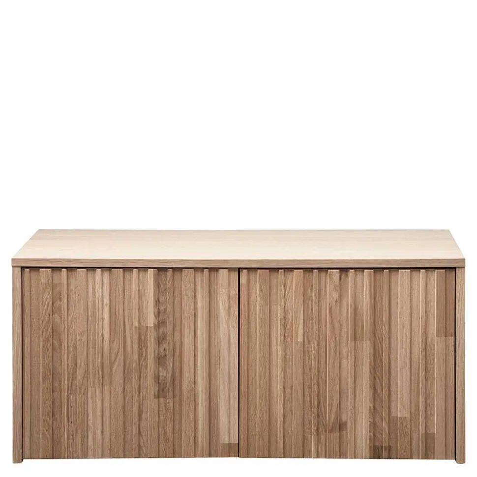 Mit seinen zwei großzügigen Schubladen bietet das Lowboard reichlich Platz für Multimedia-Zubehör, Bücher oder andere Alltagsgegenstände. Dank des Rollenauszugs lassen sich die Schubladen leichtgängig öffnen und schließen. Die vertikale Rillenstruktur auf der Front setzt zudem einen dekorativen Akzent und verleiht dem Möbelstück eine besonders edle Note.