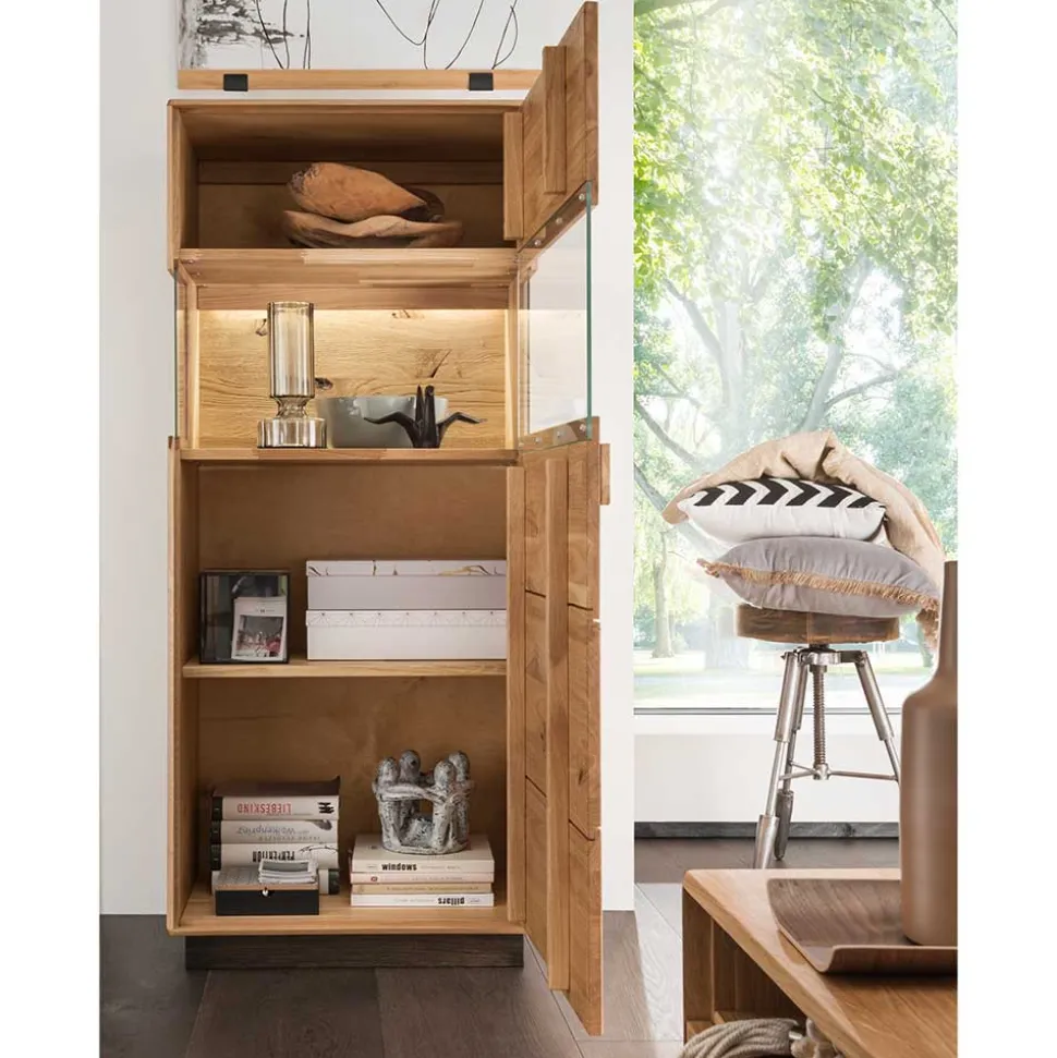 - Hergestellt aus Wildeiche (Front) und Eiche (Korpus) Massivholz sowie Glas