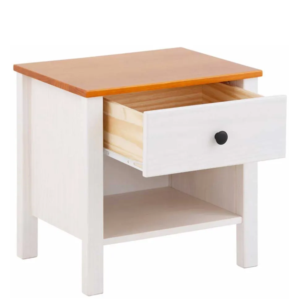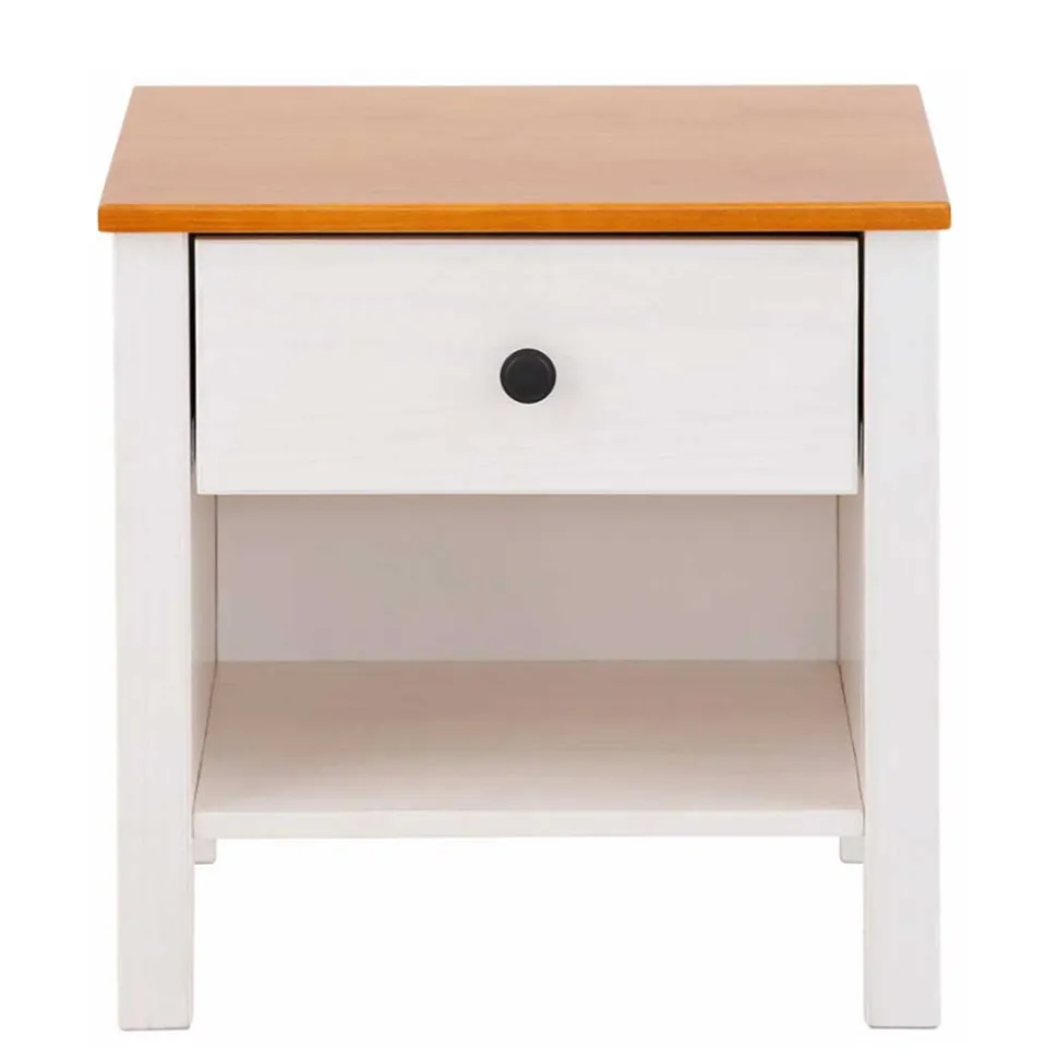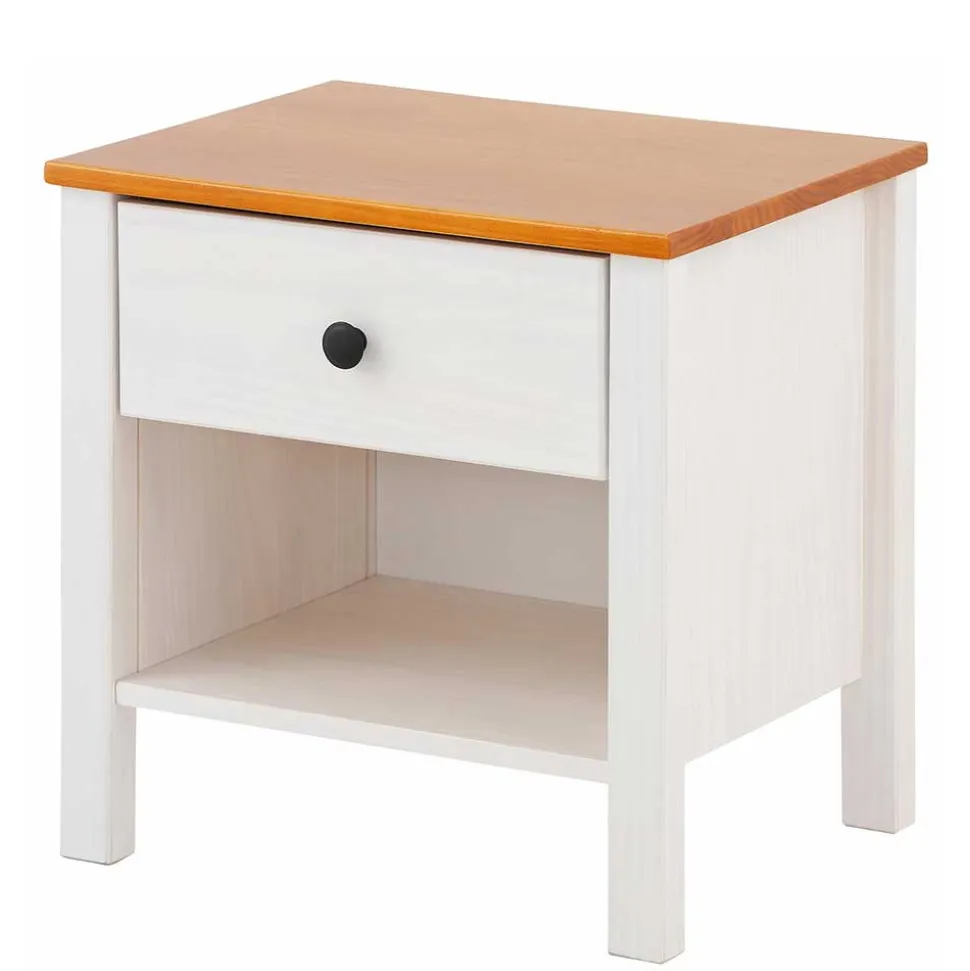 - Erstklassige Nachtkommode in Weiß und Kiefer Honigfarben