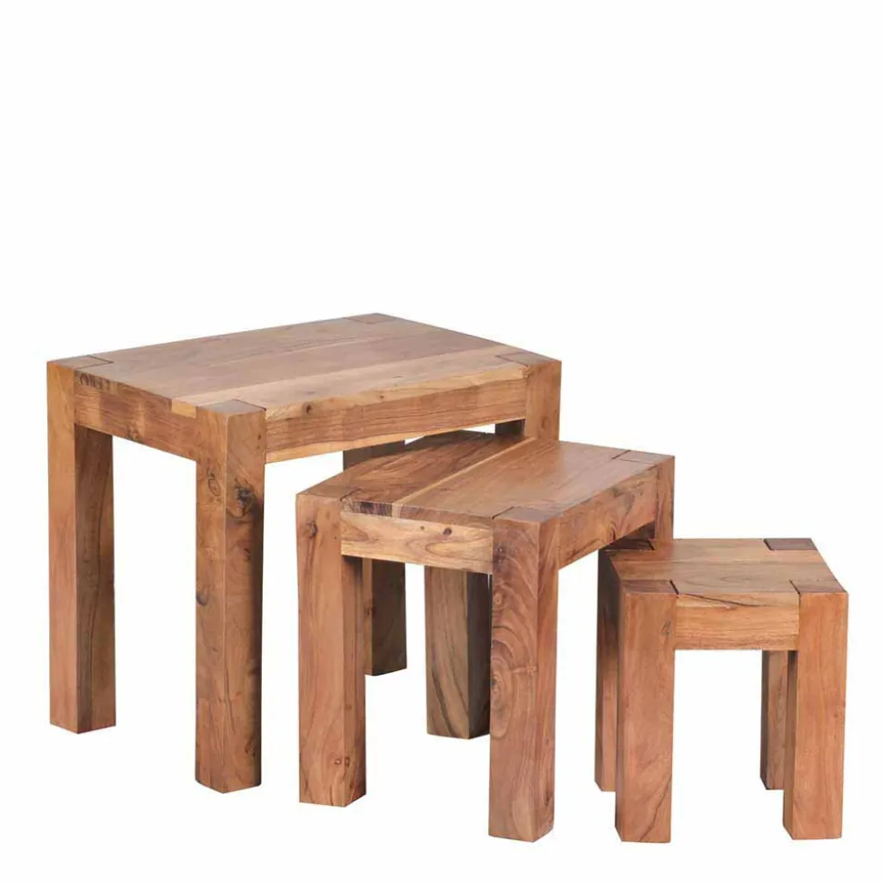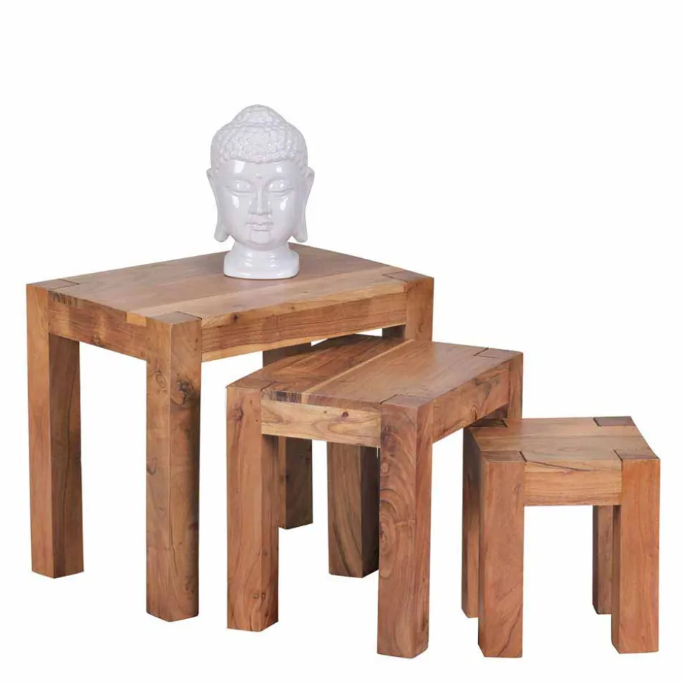 Akazienholz zählt zu den härtesten und langlebigsten Hölzern überhaupt. Die dichte Struktur des Holzes macht es besonders widerstandsfähig gegenüber Kratzern, Druckstellen und anderen Beanspruchungen des Alltags. Möbel aus Akazie behalten ihre Form, sind stabil und gleichzeitig elastisch. Besonders hervorzuheben ist auch die Nachhaltigkeit dieses Rohstoffs: Akazien wachsen schnell nach und stellen damit eine umweltbewusste Alternative zu vielen Tropenhölzern dar. Bei diesem Beistelltisch kommt ausschließlich massives Akazienholz zum Einsatz – für eine Qualität, die man sieht und fühlt.