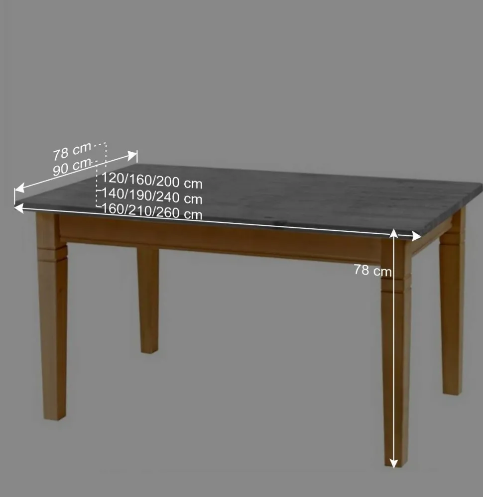 - 004: Breite: 200 / Tiefe: 78 / verlängerbar um je 40 cm, von 120 bis auf 200 cm / mit zwei Ansteckplatten / für sechs Personen