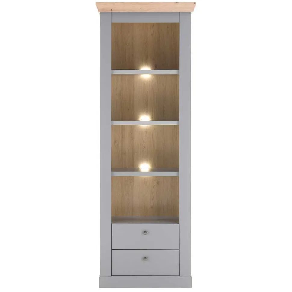- Schicke Wohnwand in Lichtgrau und Eichefarben