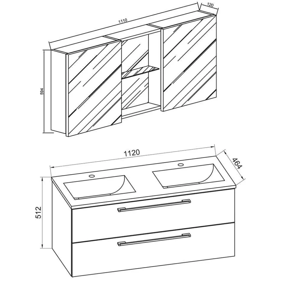 - Der Waschtisch (BxHxT: 112x51x46 cm): Der geräumige Waschtisch mit Doppelwaschbecken aus hochwertiger Keramik (BxHxT: 110x17x46 cm, Innenmaße je ca. 43×28,4 cm) ist ideal für Paare oder Familien, die sich morgens nicht in die Quere kommen möchten. Zwei große Schubladen mit stabilen Metallauszügen bieten viel Platz für Pflegeprodukte, Handtücher oder Reinigungsutensilien. Bitte beachten: Armaturen und Abflusszubehör sind nicht im Lieferumfang enthalten.