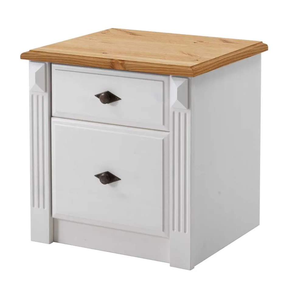 - Weiße Nachtkommode mit Kiefer laugenfarbiger Deckplatte
