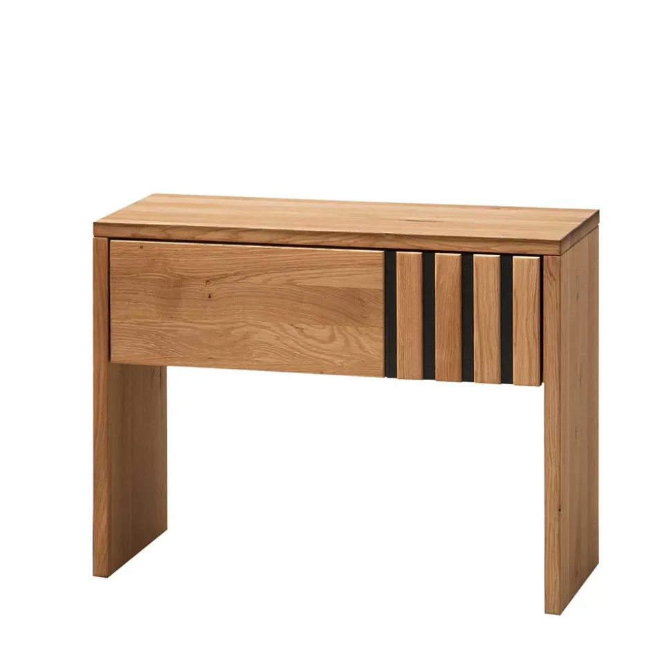 Unsere Nachtkommode „Manarola“ ist aus massivem Wildeichenholz gefertigt. Wildeiche ist nicht nur für ihre Robustheit und Langlebigkeit bekannt, sondern auch für ihre individuellen Merkmale. Wuchsrisse und Astlöcher zeugen von der Authentizität dieses Materials und geben jedem Möbelstück seinen einzigartigen Charakter. Sie sind natürliche Zeugen des Wachstums des Baumes und lassen sich nicht vermeiden.
