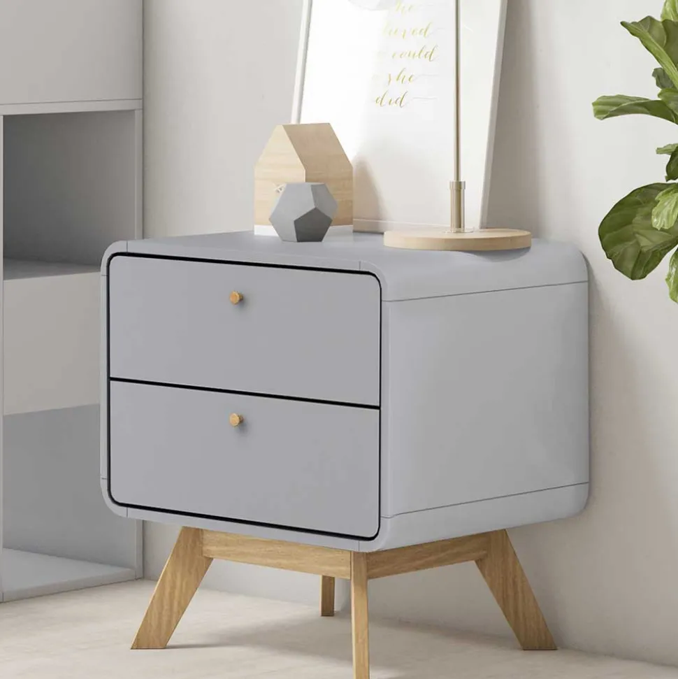 - Junge Nachtkommode in Grau und Eichefarben