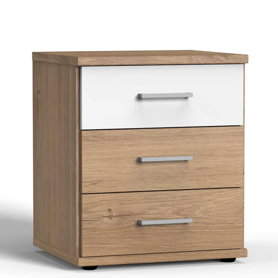 - Kompakte Nachtkommode in Eichefarben und Weiß