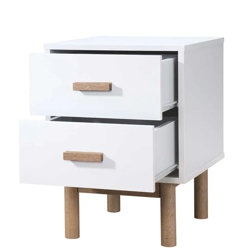 - Zeitlose Nachtkommode in Weiß und Eichefarben