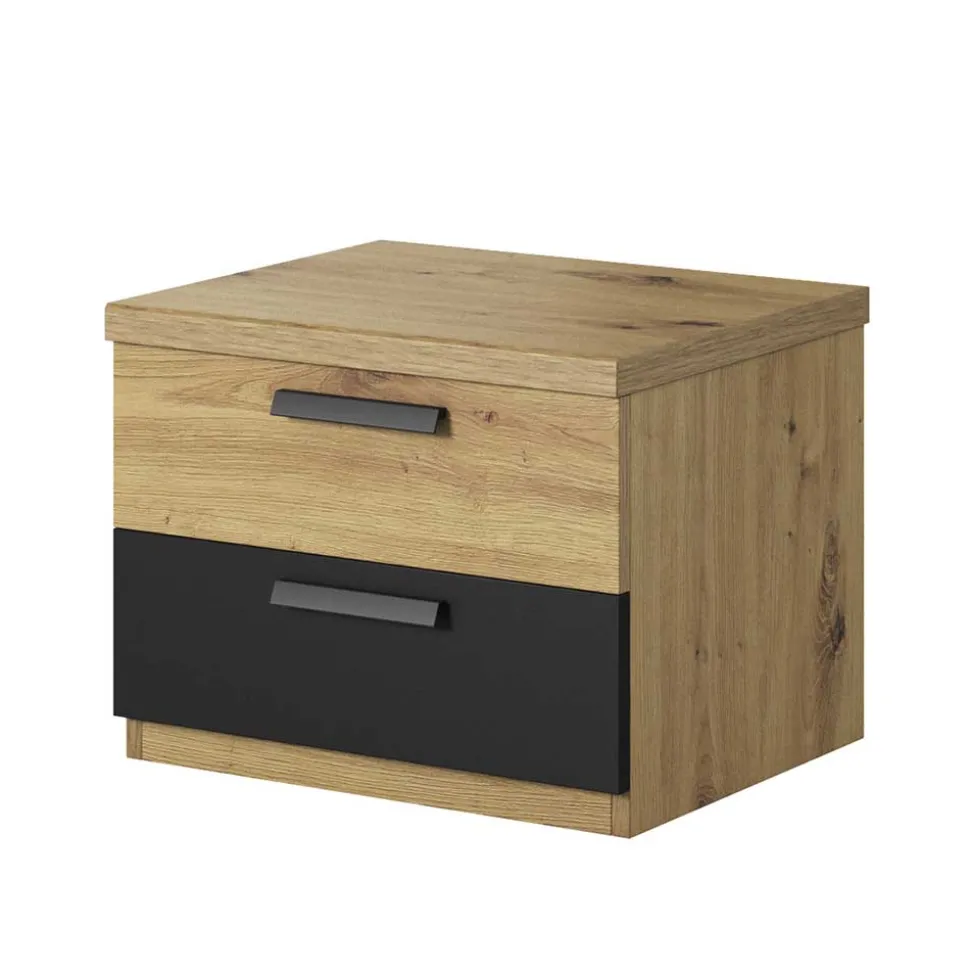 - Wohnliche Nachtkommode in Wildeichefarben und Schwarz