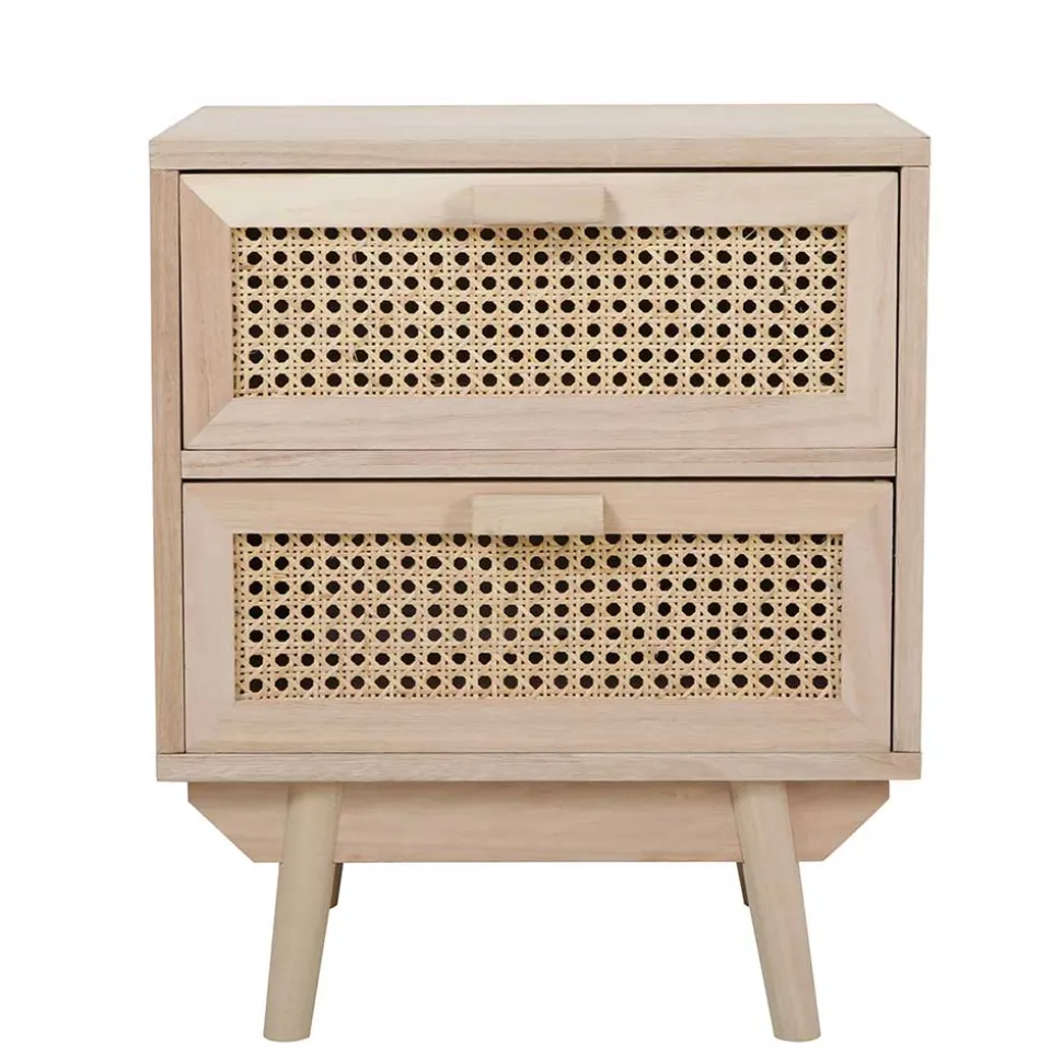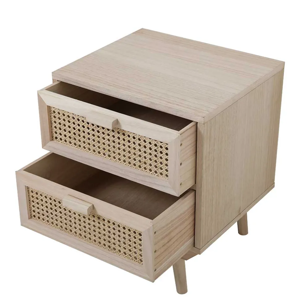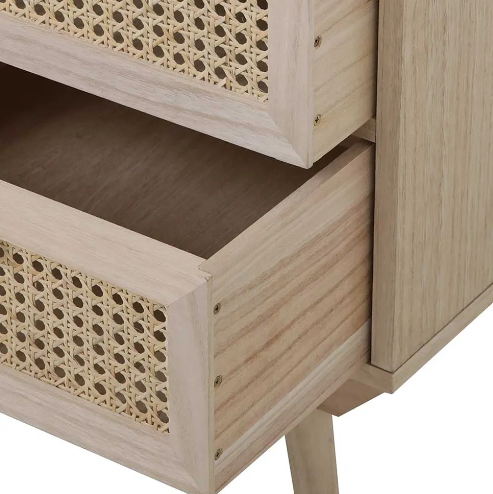 - Aus massivem Paulowniaholz, MDF und Rattan hergestellt