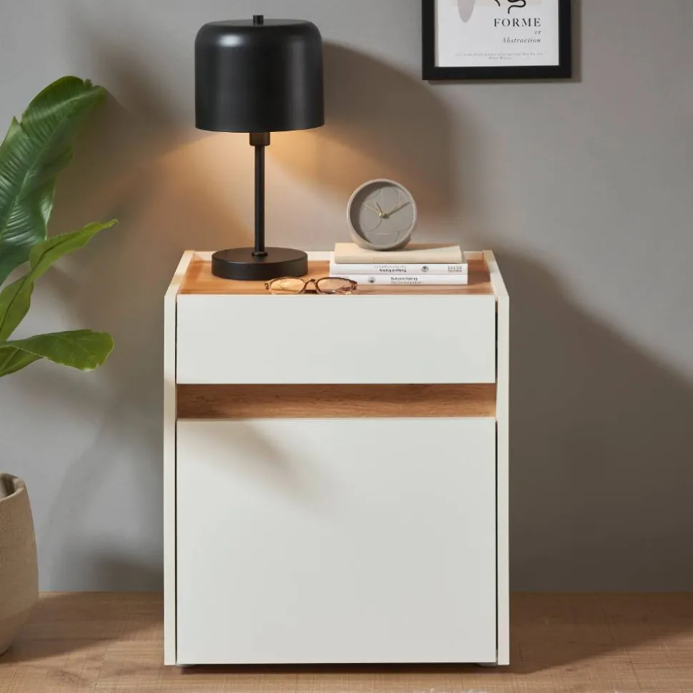 - Praktische Nachtkommode in Weiß und Wildeichefarben