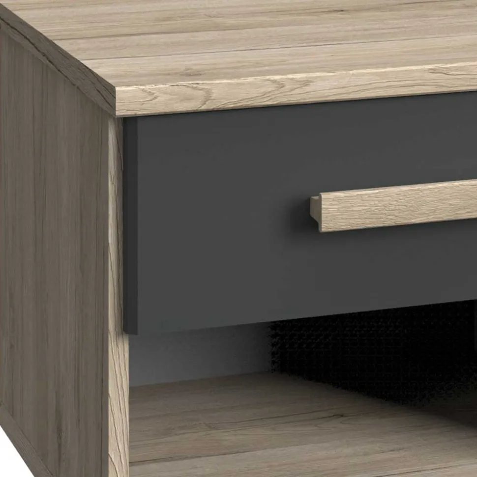 - Eine Schublade mit Metallauszug und ein offenes Fach