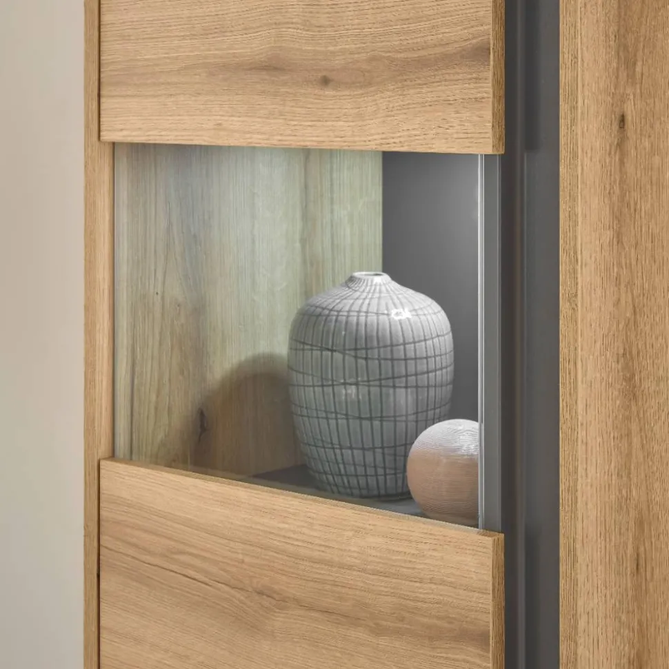 - Dekorative Vitrinen Wohnwand in Wildeichefarben und Anthrazit