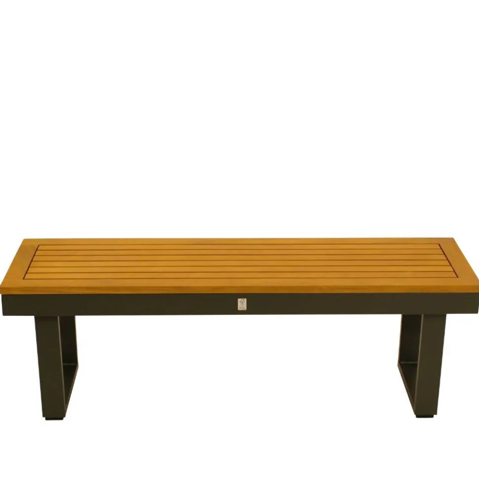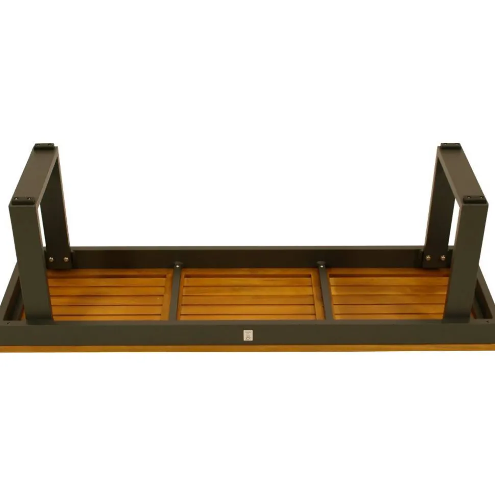 Die Sitzfläche besteht aus massivem Akazienholz mit geölter Oberfläche, die die natürliche Maserung und den warmen Farbton des Holzes optimal zur Geltung bringt. Das stabile Bügelgestell aus pulverbeschichtetem Aluminium in Anthrazit sorgt für sicheren Stand und witterungsbeständige Stabilität. Um die Lebensdauer des Holzes zu erhalten, sollte die Bank bei anhaltender Nässe oder Frost geschützt gelagert werden.