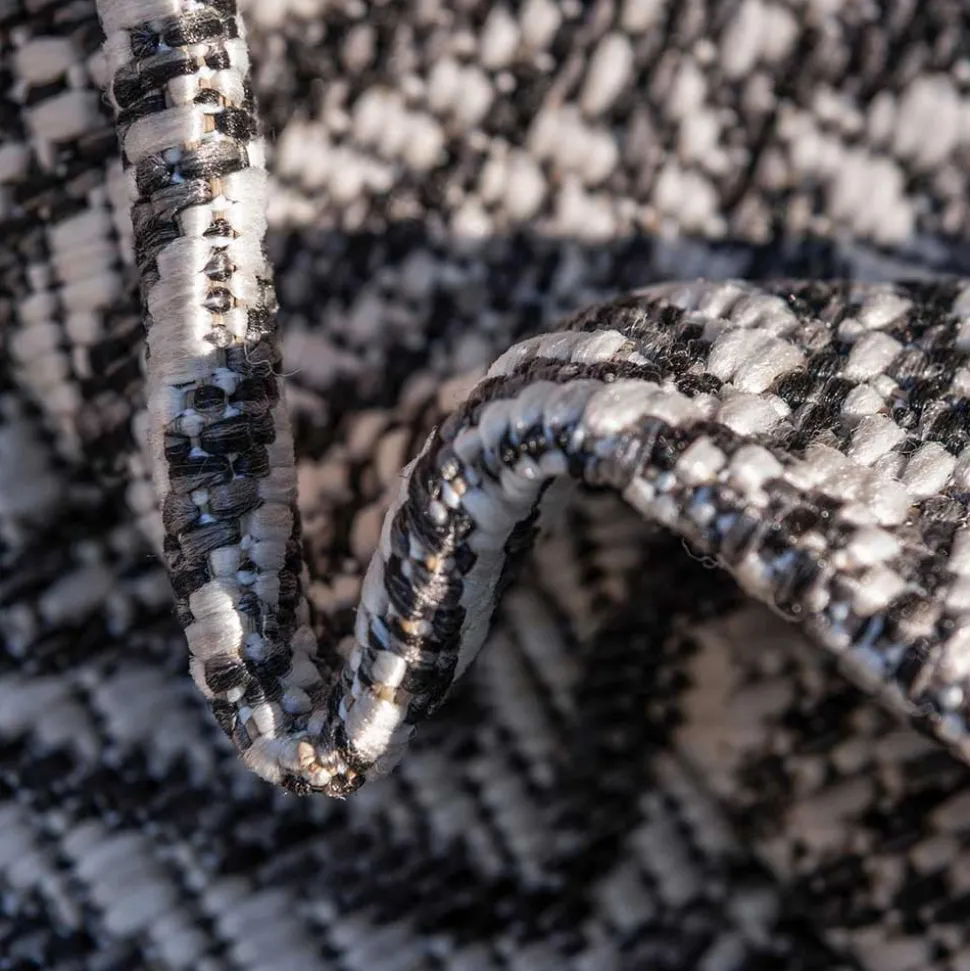 - Attraktiver In- und Outdoorteppich in Dunkelgrau und Cremefarben